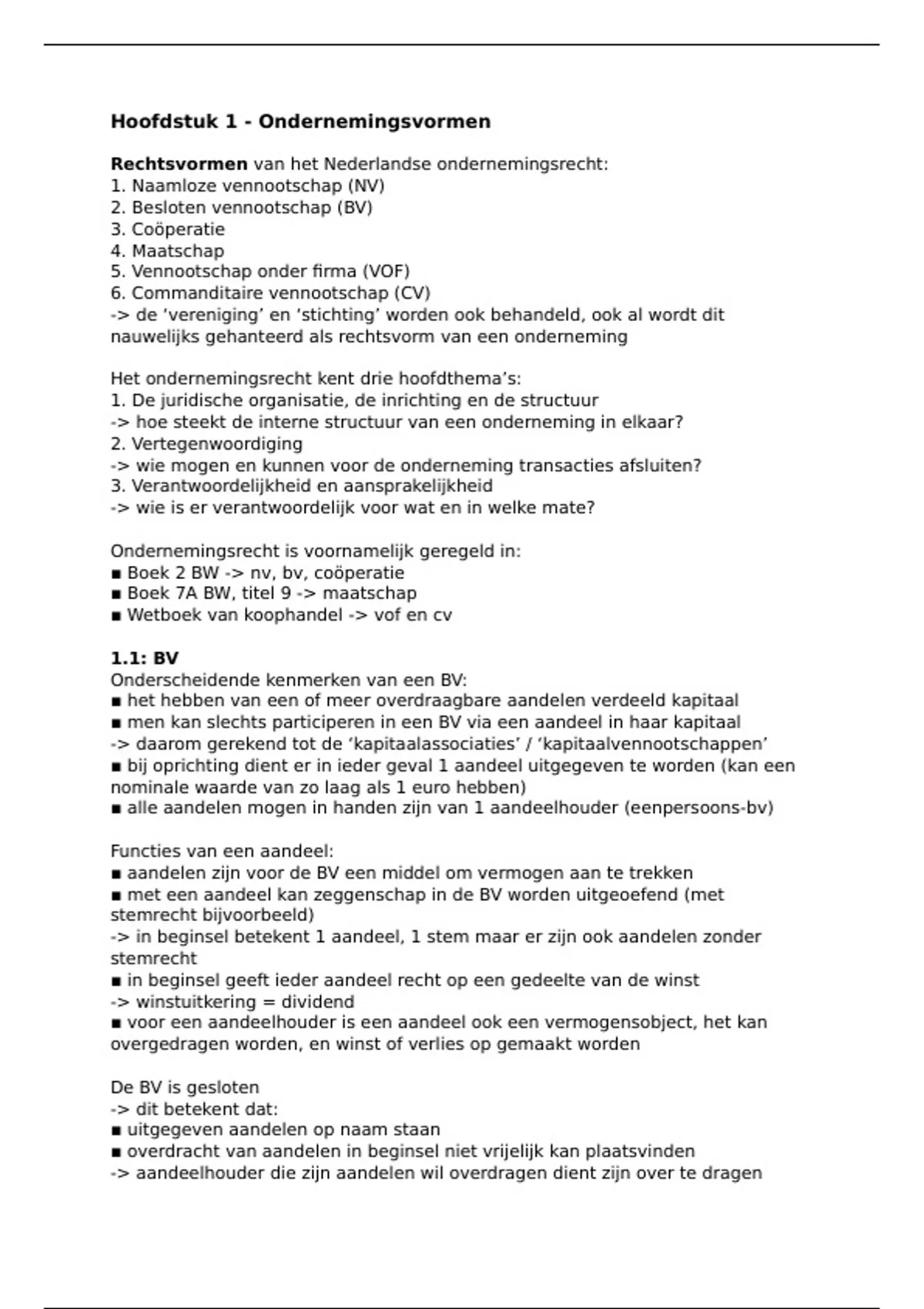 Hoofdstuk 1 - Ondernemingsvormen