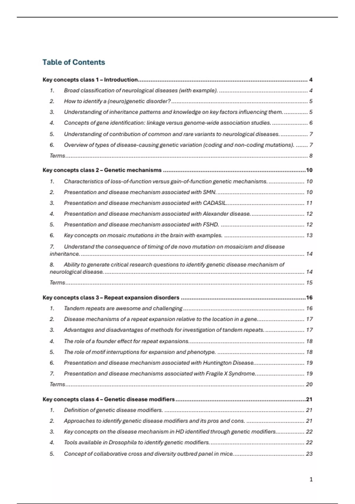 Key concepts class 3 – Repeat expansion disorders ...................................................................... 16