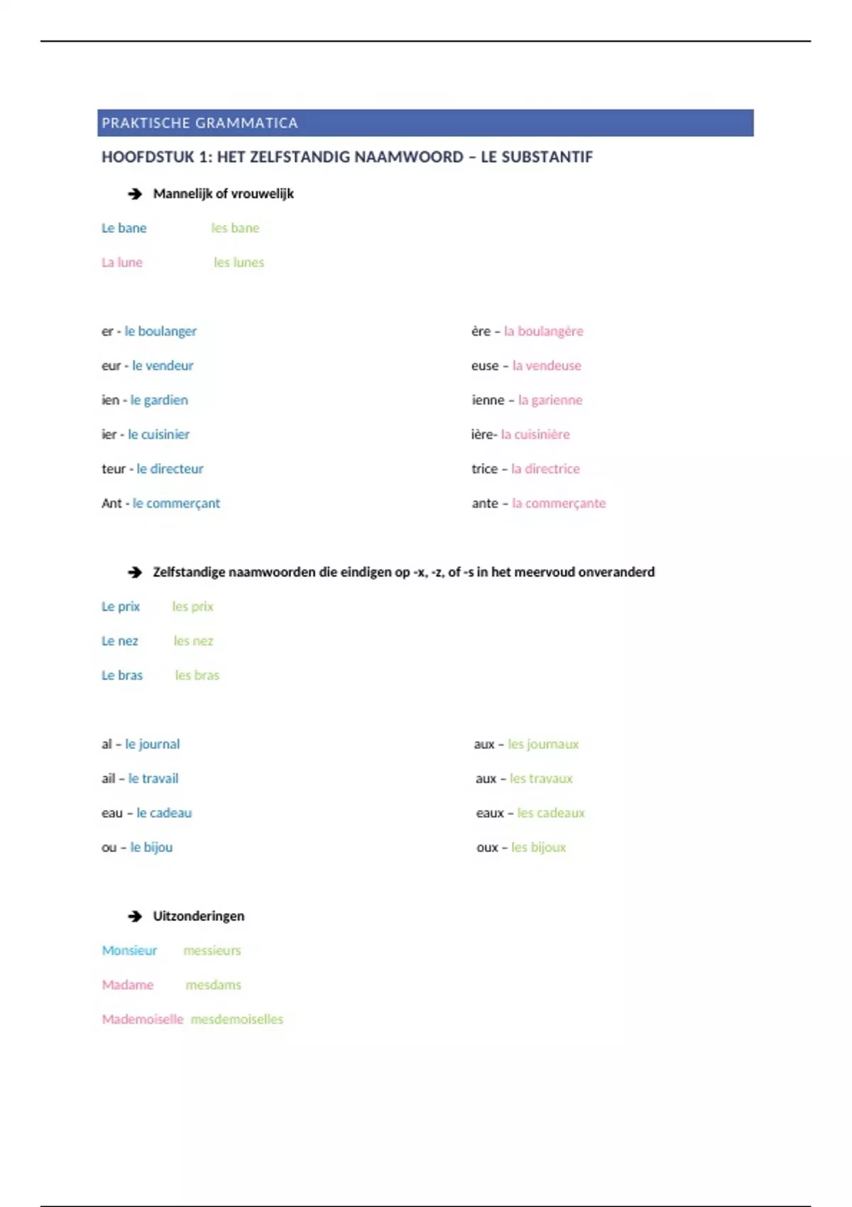 HOOFDSTUK 1: HET ZELFSTANDIG NAAMWOORD – LE SUBSTANTIF