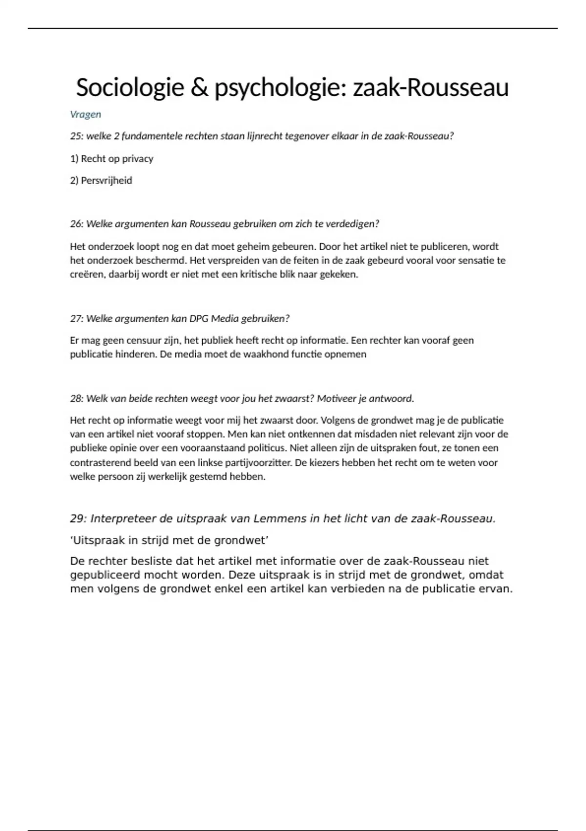 29: Interpreteer de uitspraak van Lemmens in het licht van de zaak-Rousseau.
