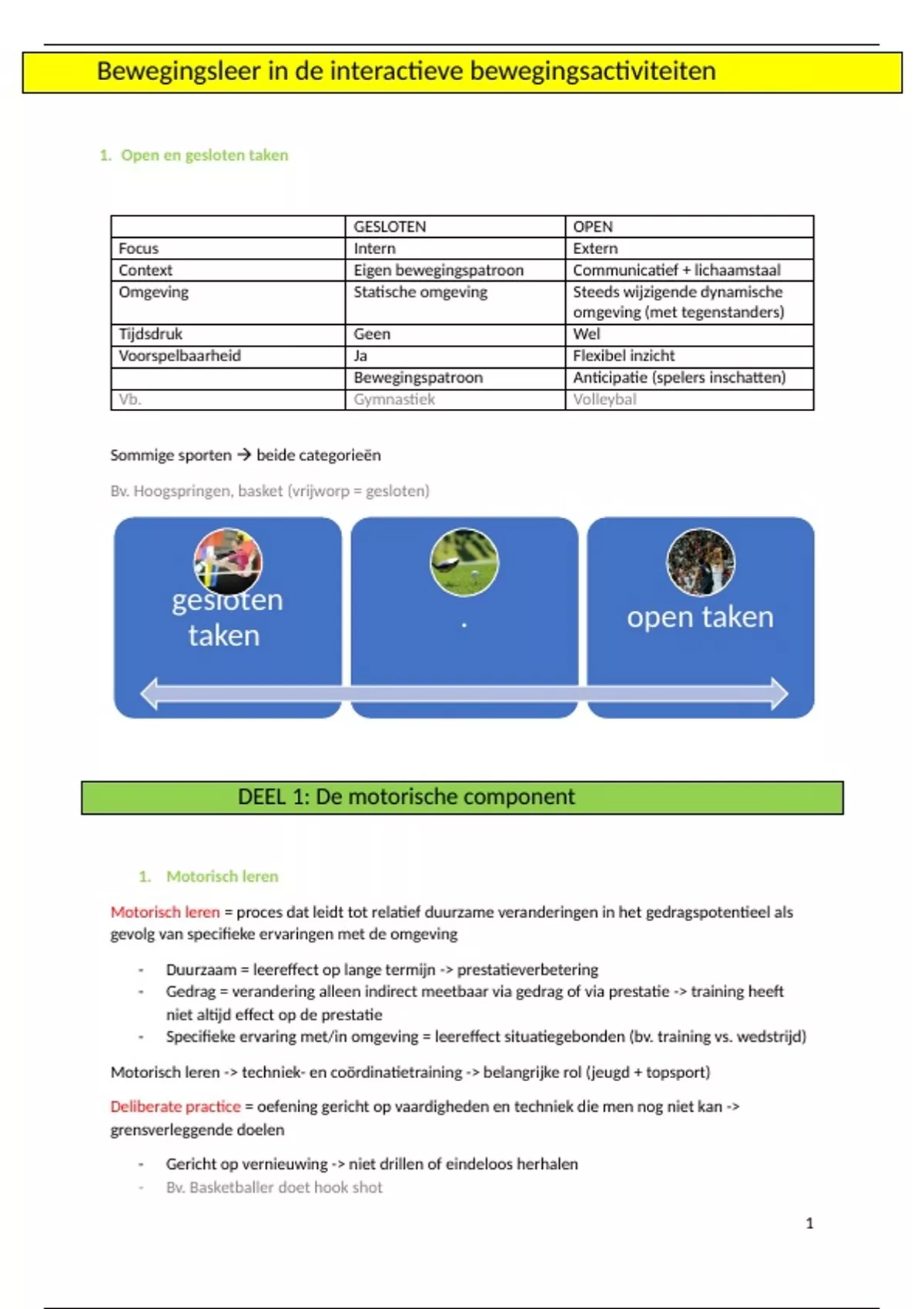 Samenvatting - Bewegingsleer in de interactieve bewegingsactiviteiten I