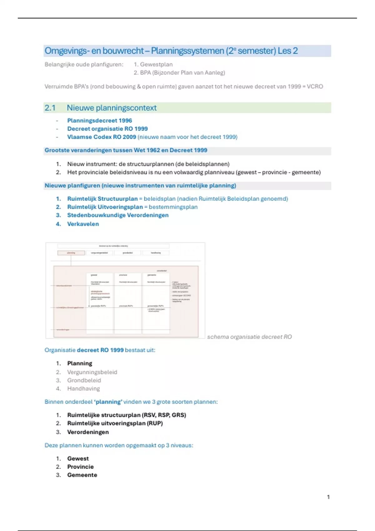 samenvatting Omgevings- en bouwrecht - Guy Vloebergh - Les 2