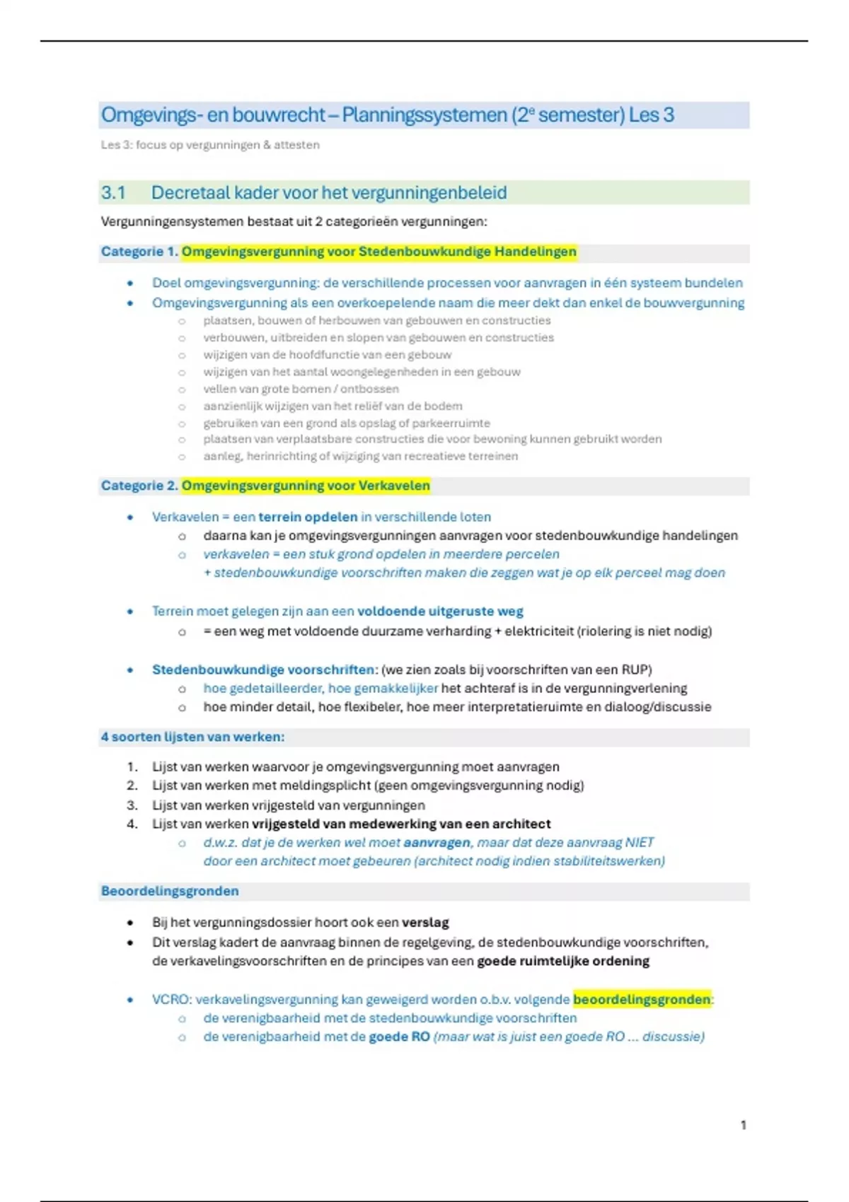 samenvatting Omgevings- en bouwrecht - Guy Vloebergh - Les 3