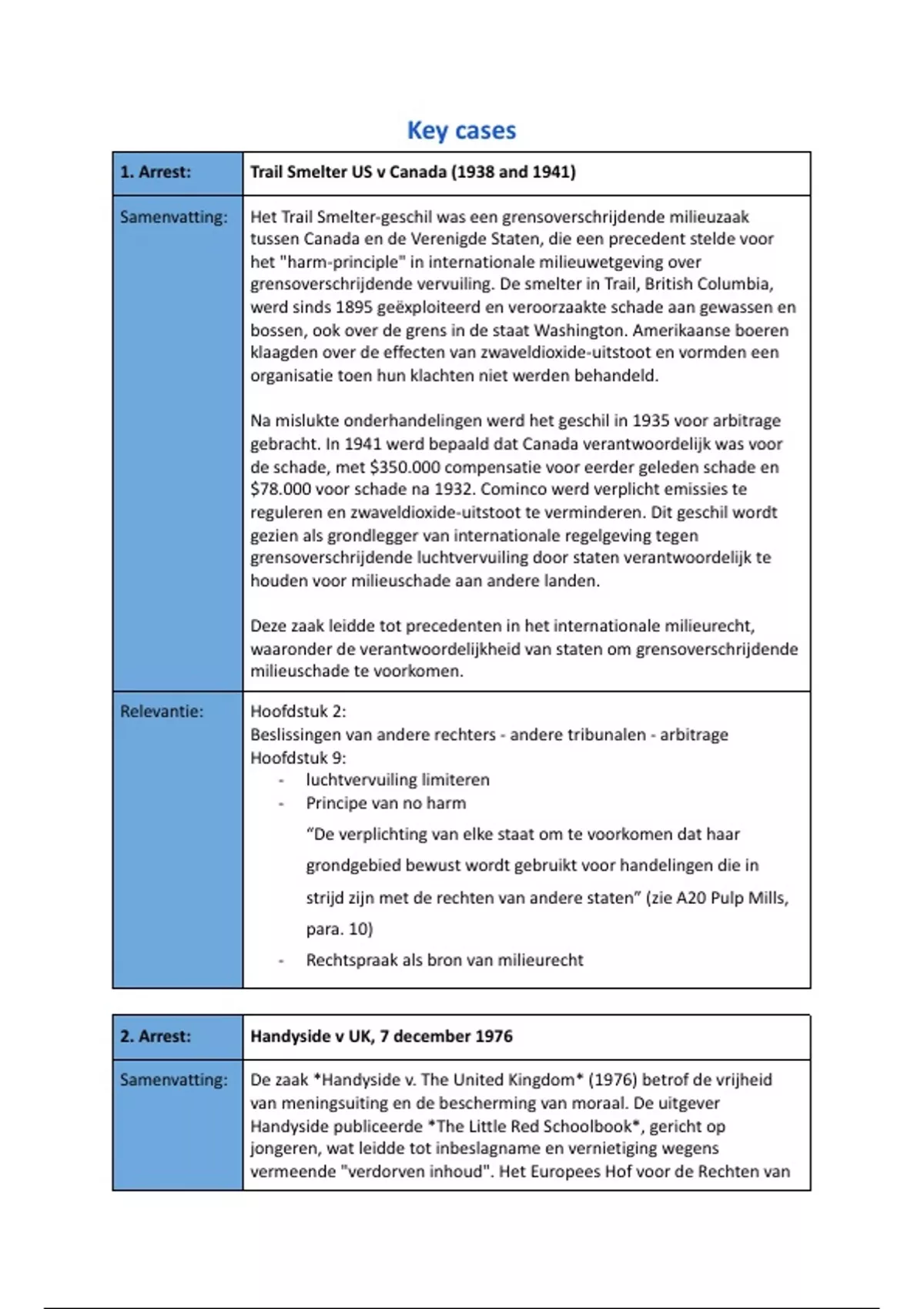 Dit s een overzicht van alle te kennen key arrest van Volkenrecht. Per arrest is er een korte samenvatting van de zaak en een oplijsting van alle relevante concepten uit de cursus.