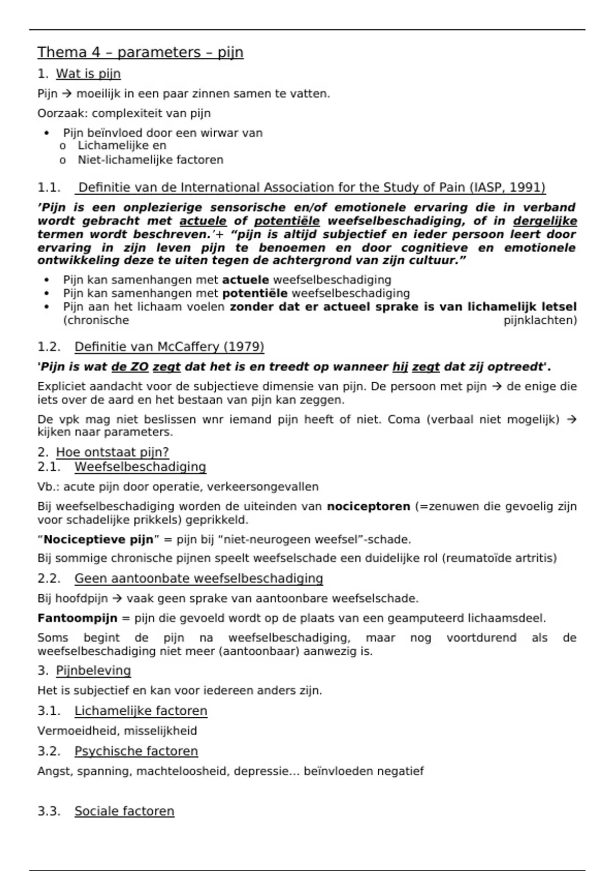Uit VMV 1 van OLF 1 staat hier hoofdstuk 4, het deel rond pijn samengevat.