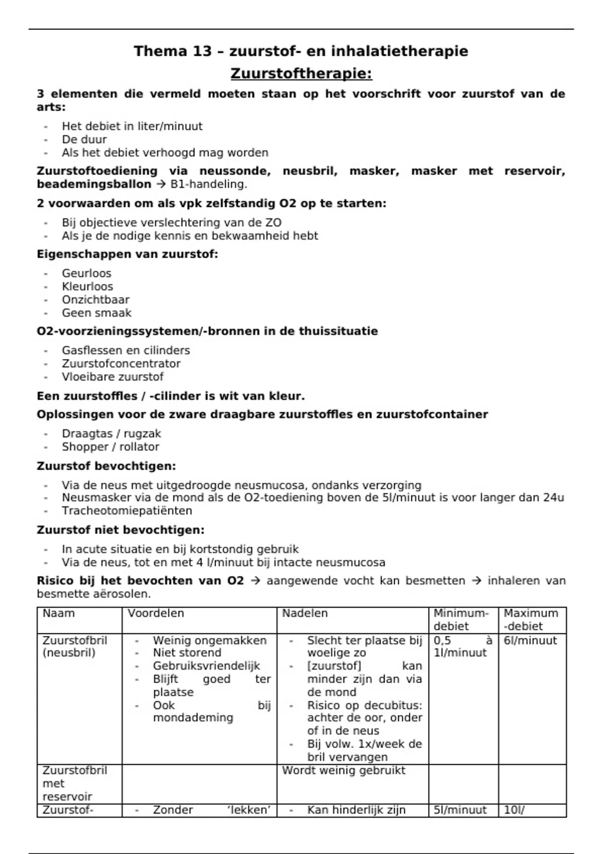 Thema 13 – zuurstof- en inhalatietherapie