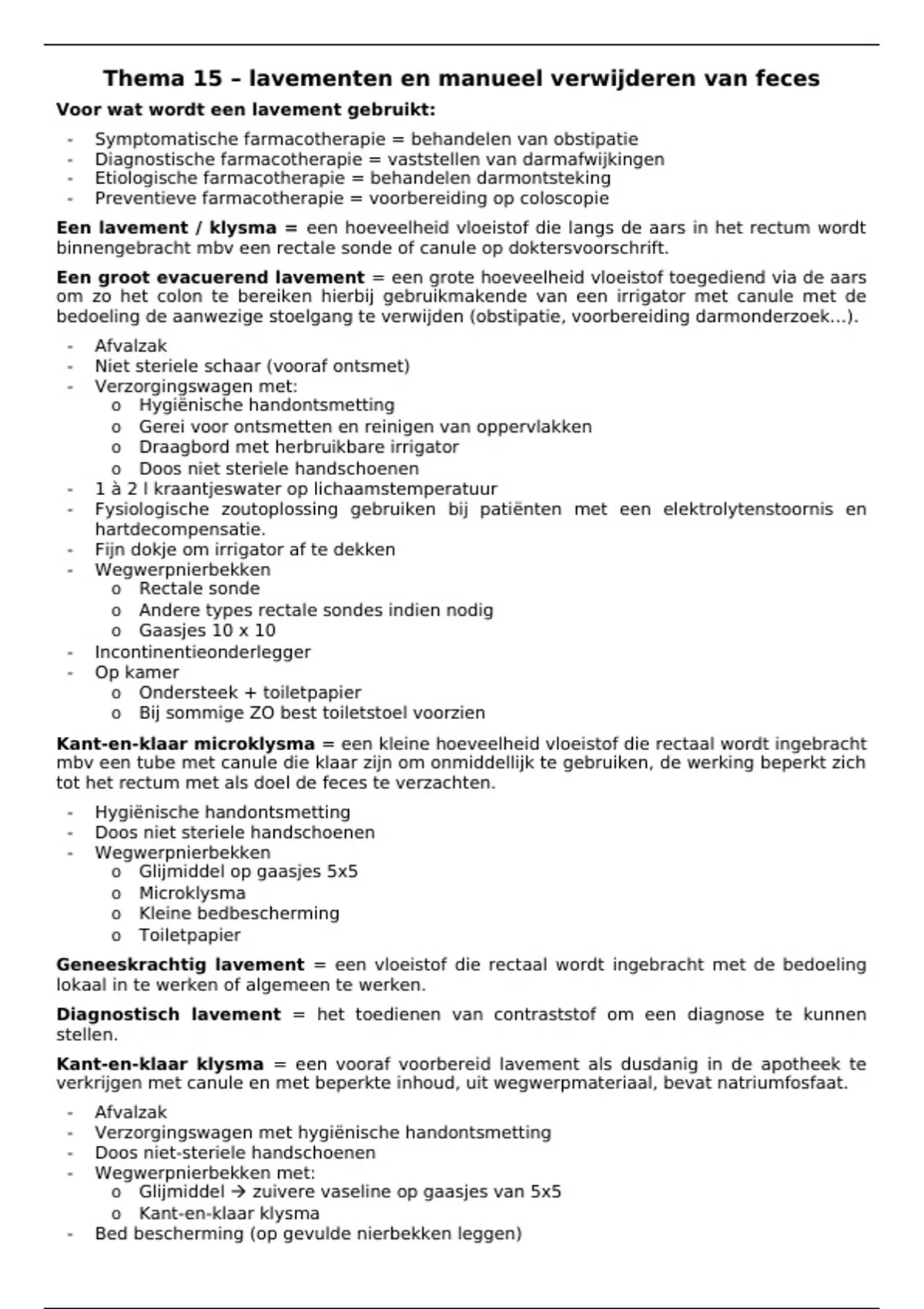 Samenvatting VMV 2: Thema 15 – lavementen en manueel verwijderen van feces