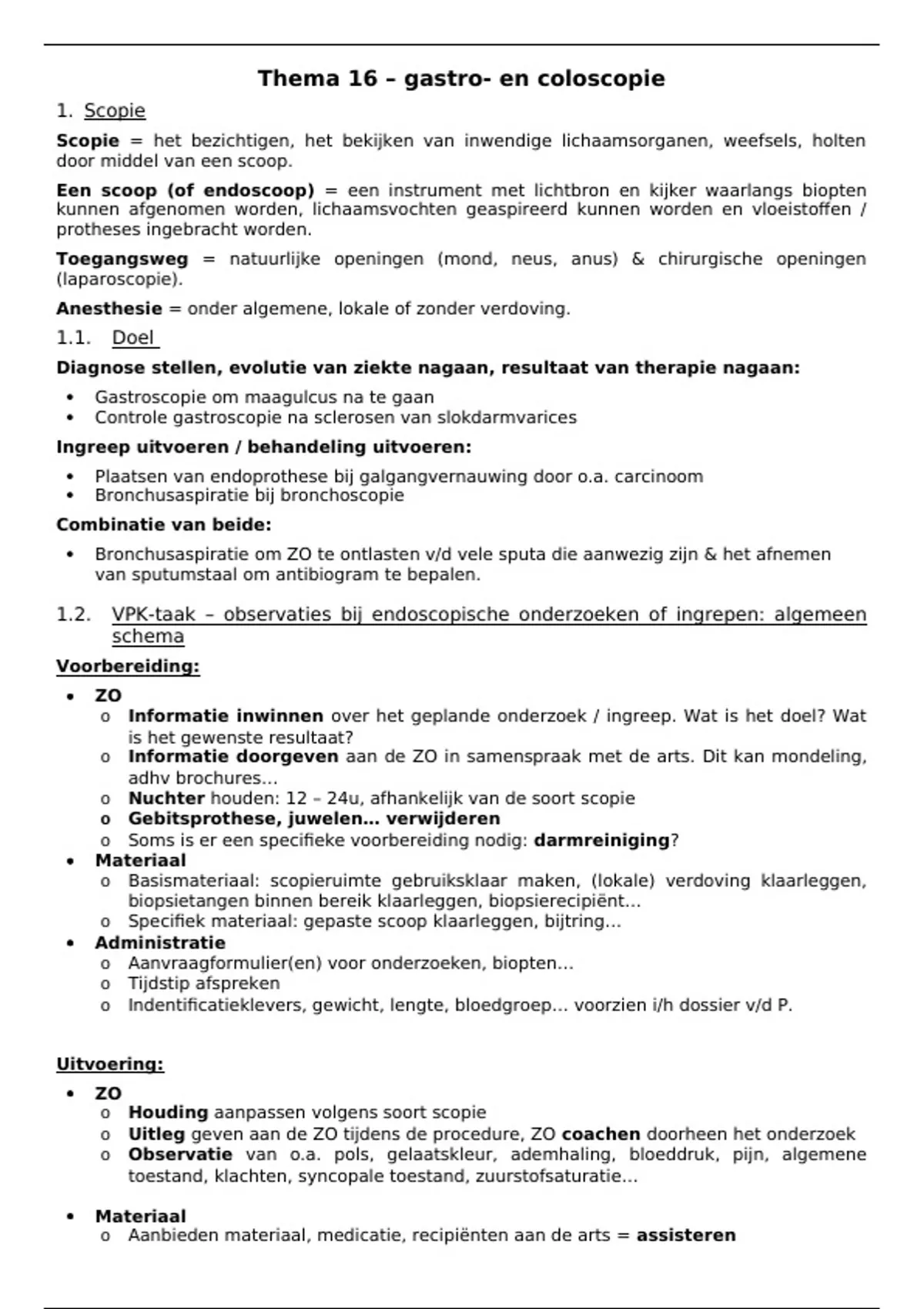 Samenvatting VMV 2: thema 16 - gastro- & coloscopie