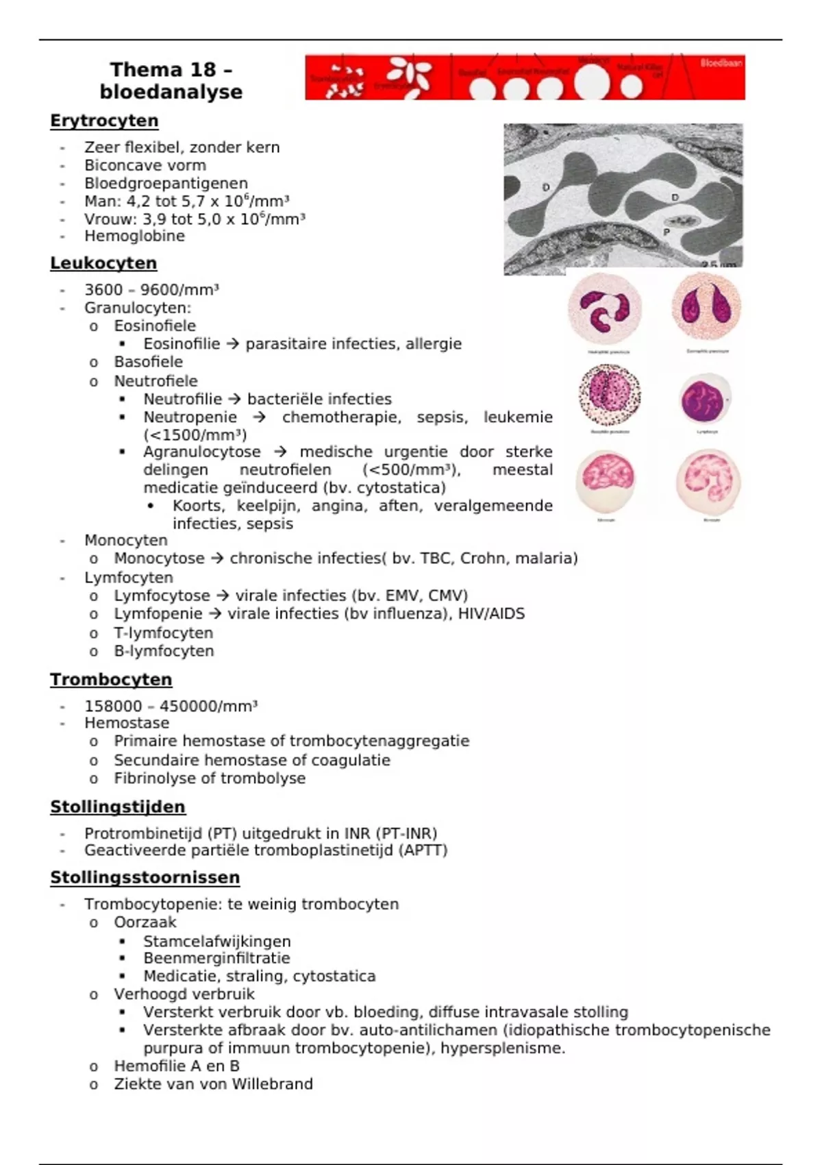- Trombocytopenie: te weinig trombocyten
