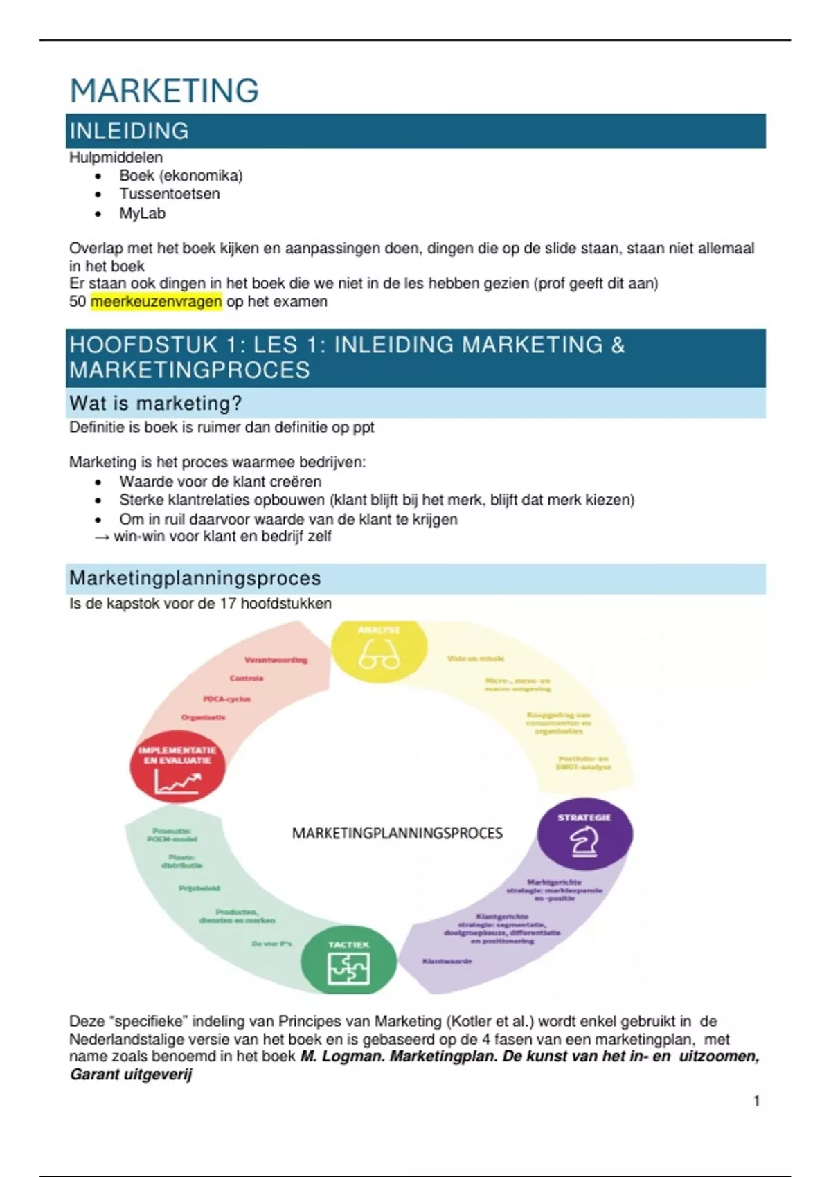 Deze “specifieke” indeling van Principes van Marketing (Kotler et al.) wordt enkel gebruikt in de