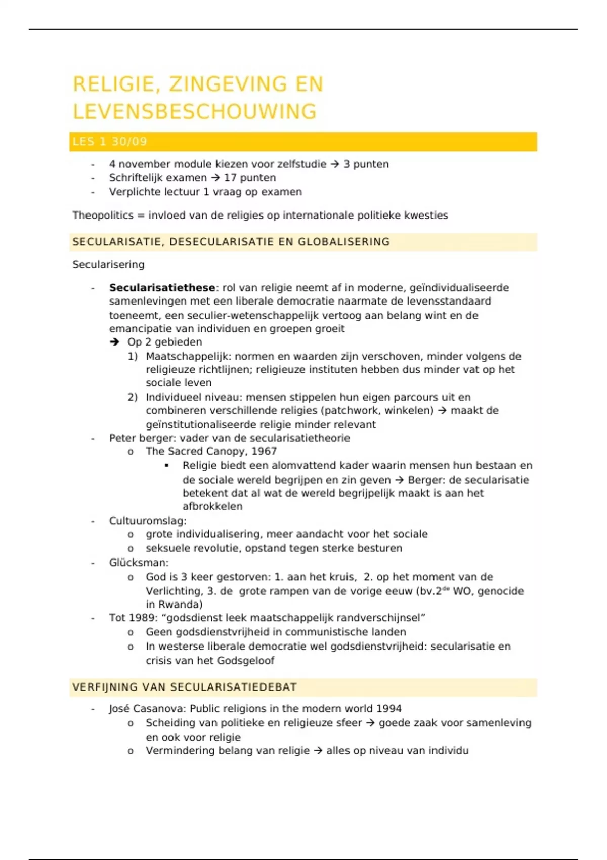 Samenvatting - Religie zingeving levensbeschouwing (A07C8a)