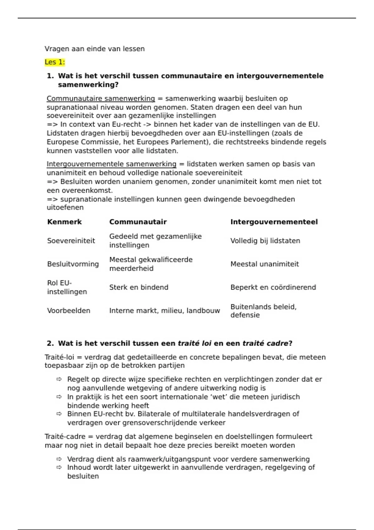 1. Wat is het verschil tussen communautaire en intergouvernementele