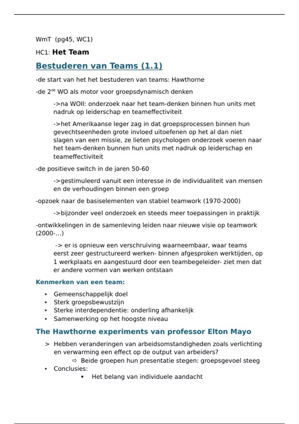 samenvatting Werken met teams: samenvatting van alle hoorcolleges en werkcolleges van dit vak in de juiste volgorde en met herkenbare afbeeldingen