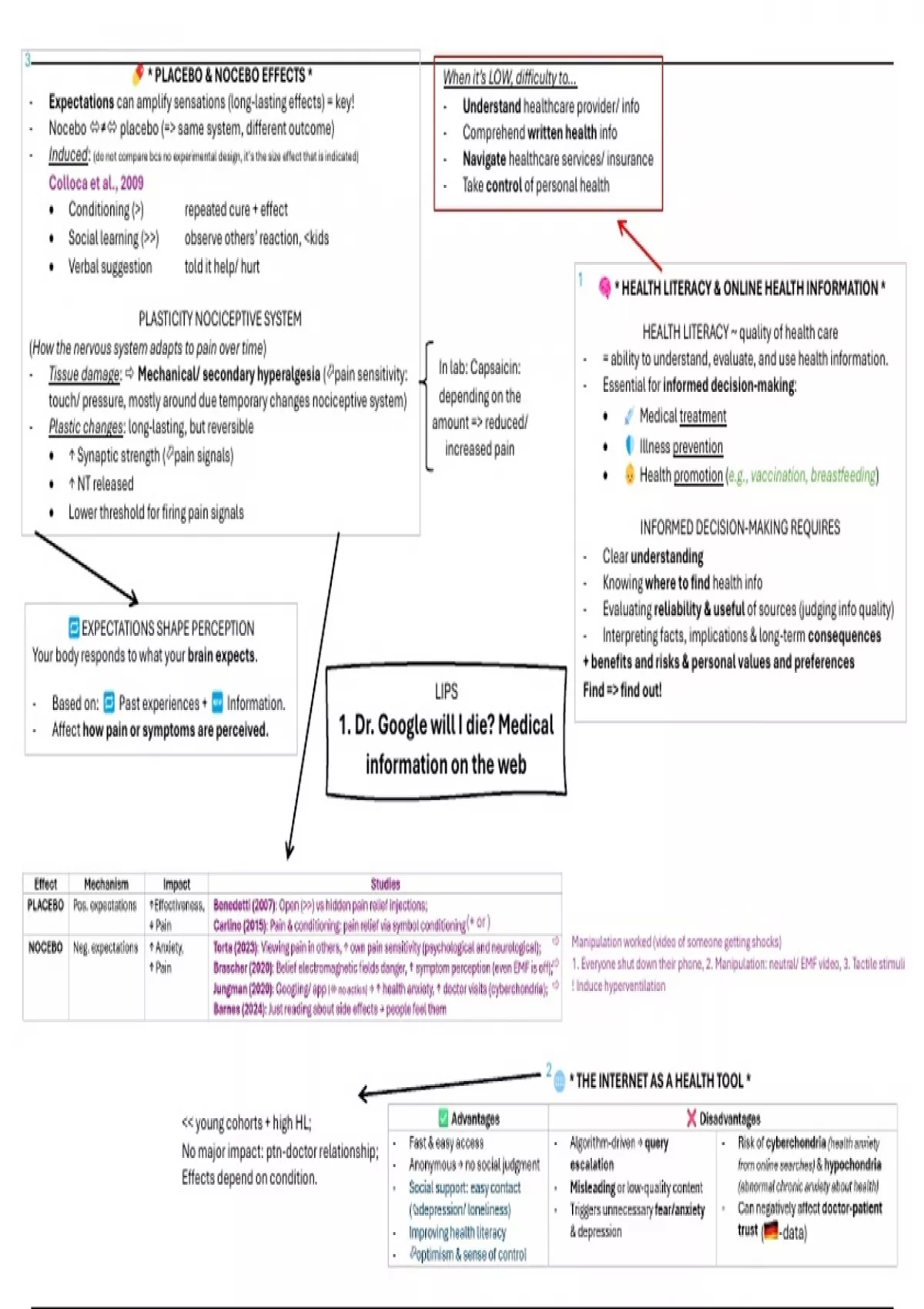 - Nocebo ≠ placebo (=> same system, different outcome) - Comprehend written health info