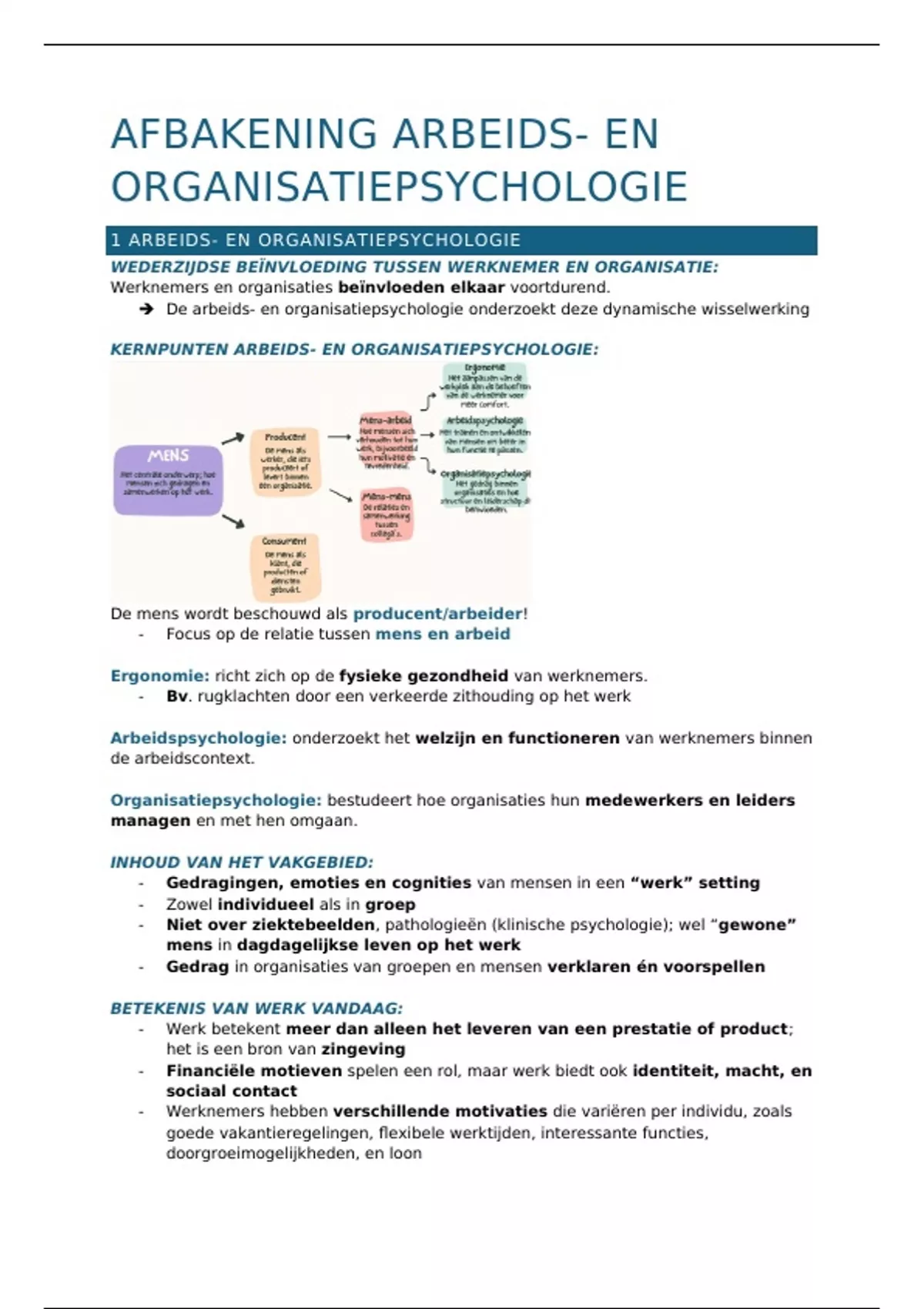 Volledige duidelijke uitgebreide samenvatting mens & werk / mooie opmaak / van jaar 1, semester 2 / alle hoofdstukken inbegrepen