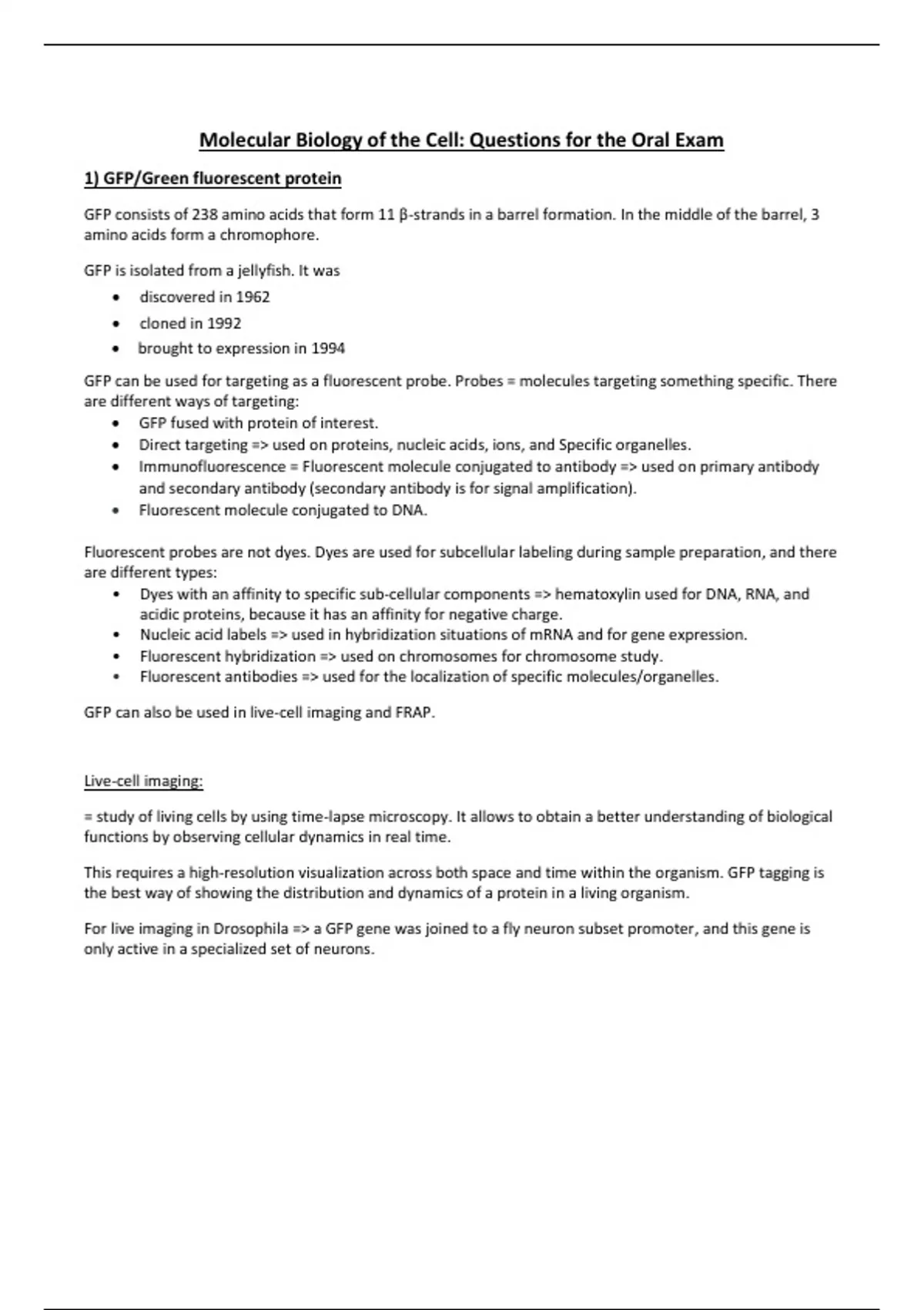 Molecular Biology of the Cell: Questions for the Oral Exam