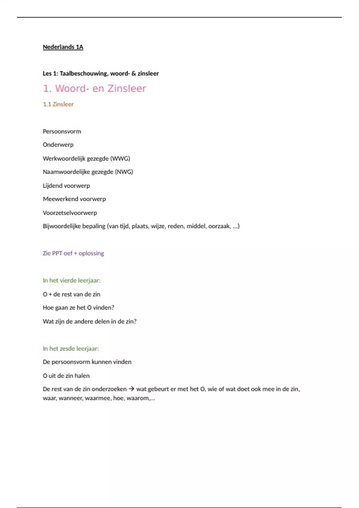 1. Woord- en Zinsleer
