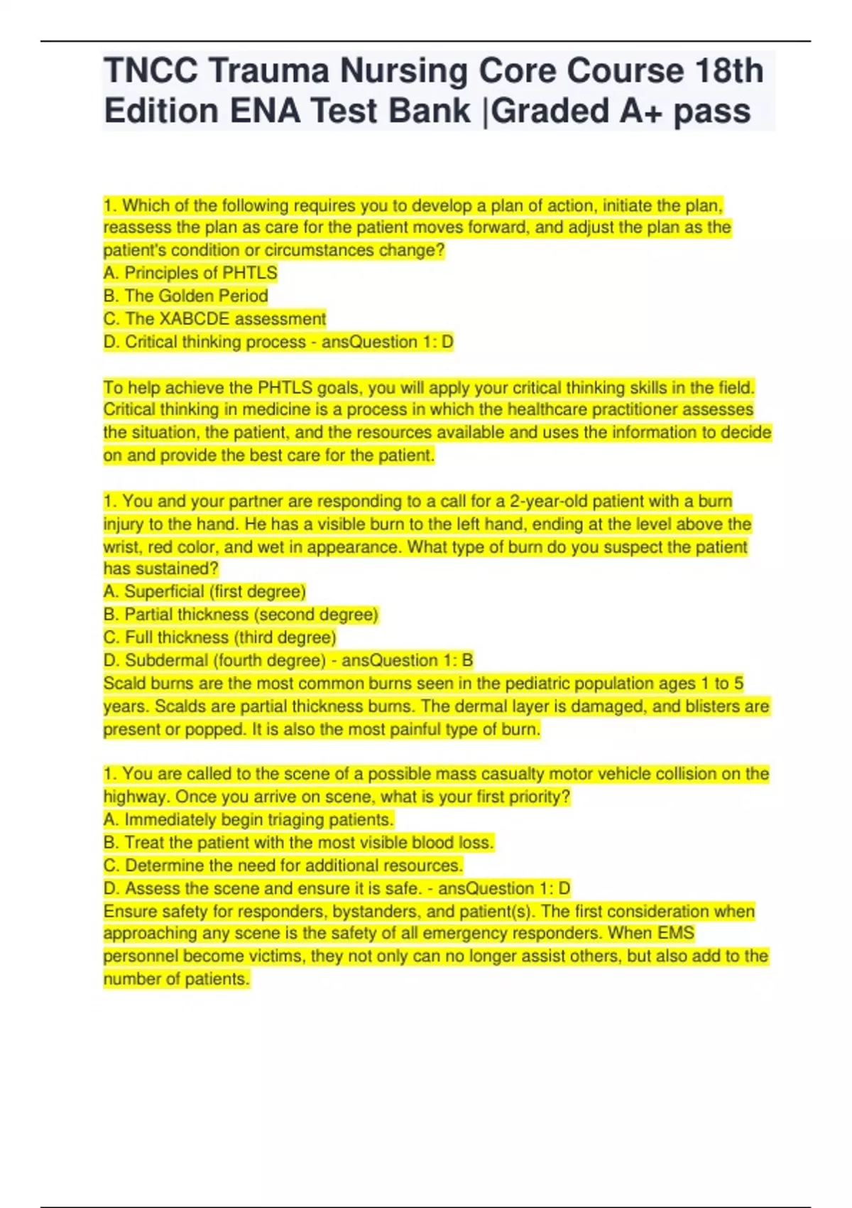 1. You and your partner are responding to a call for a 2-year-old patient with a burn