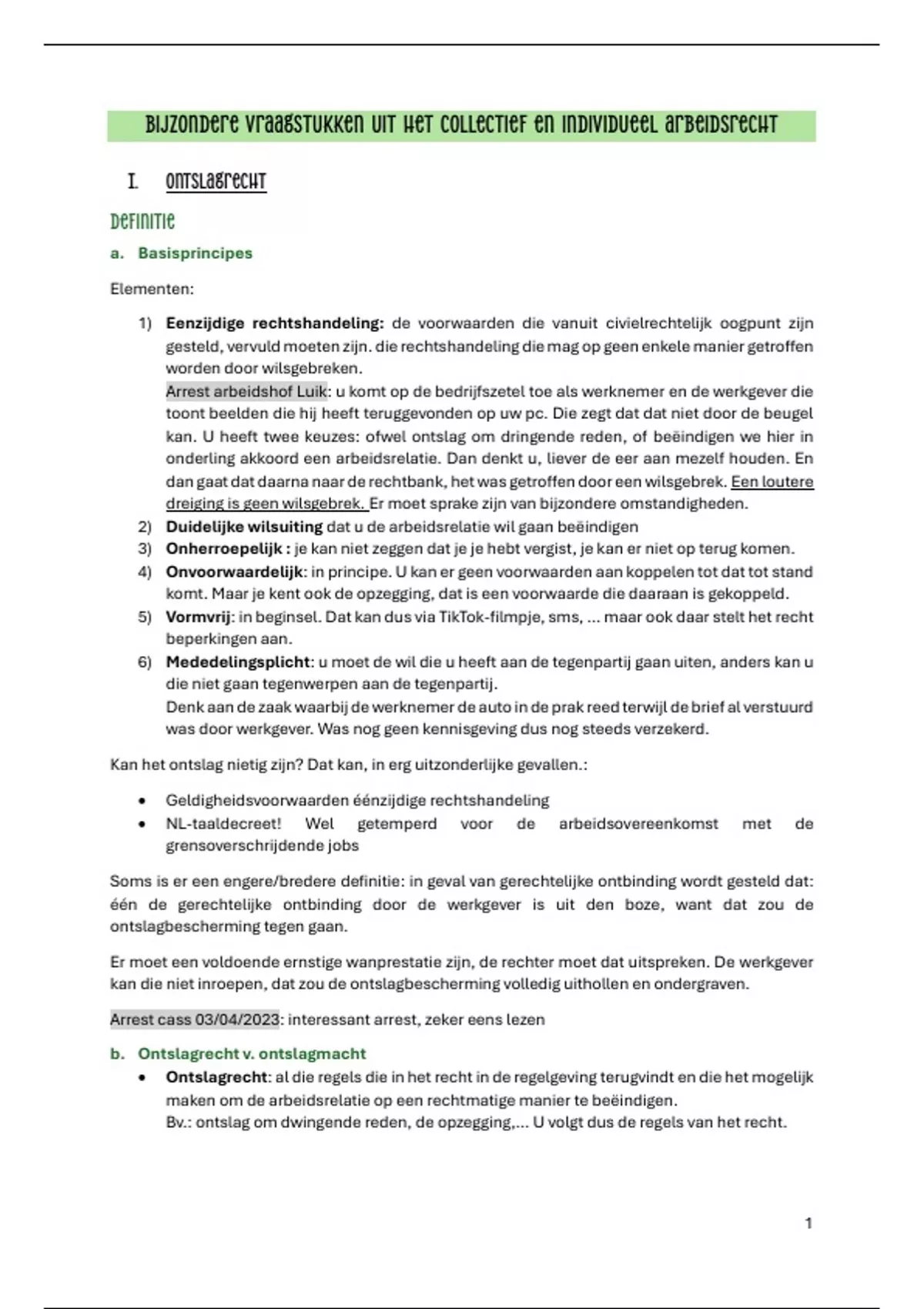 I. Ontslagrecht