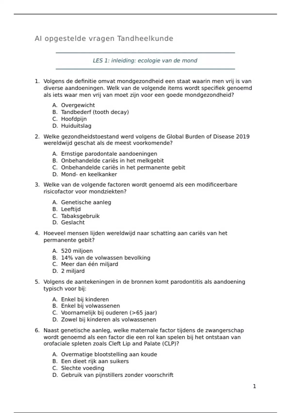 1. Volgens de definitie omvat mondgezondheid een staat waarin men vrij is van