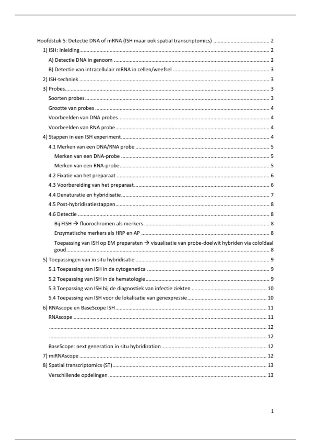 Hoofdstuk 5: Detectie DNA of mRNA (ISH maar ook spatial transcriptomics) ....................................... 2