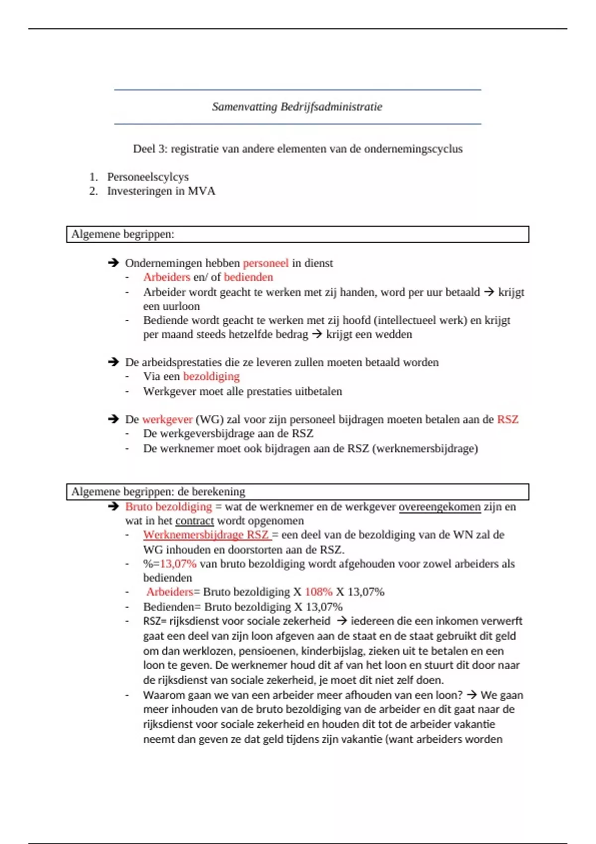 Samenvatting bedrijfsadministratie deel 2, Samenvatting van lesnota's en handboek. Een 14/20 gehaald hiermee.