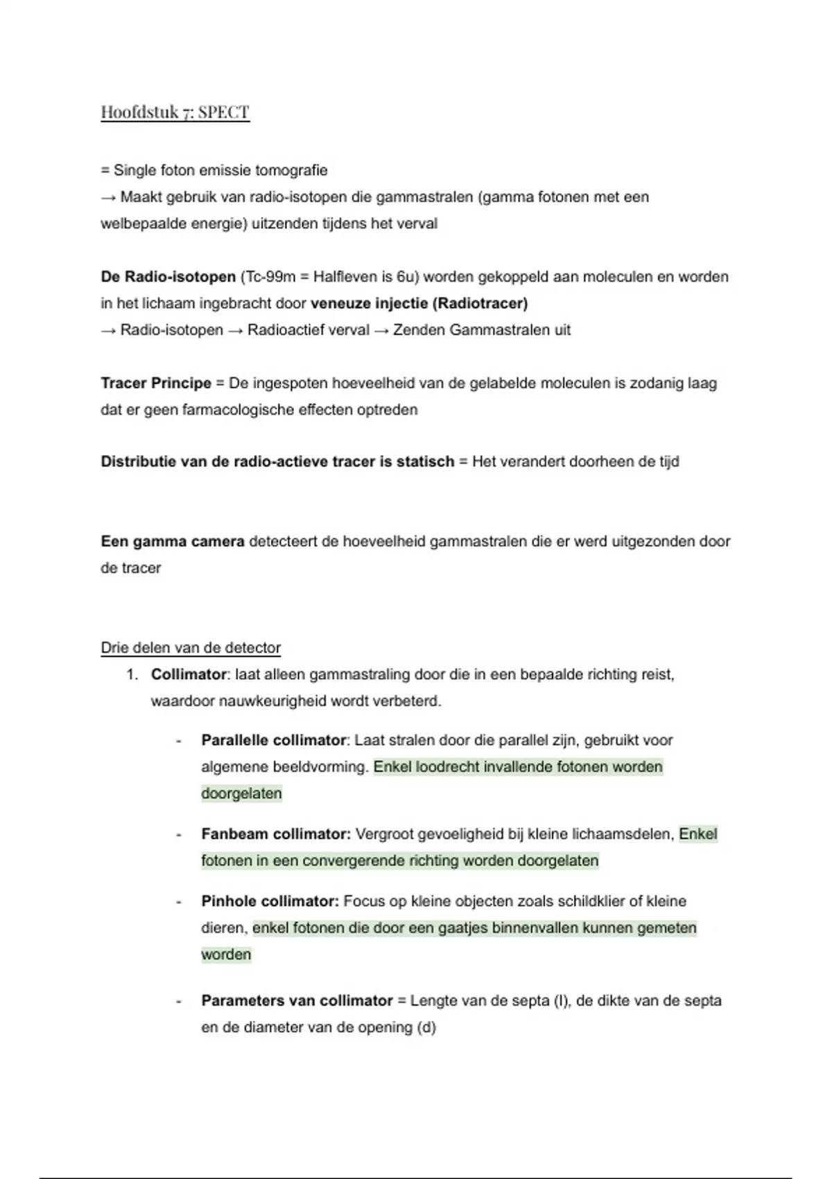 - Parallelle collimator: Laat stralen door die parallel zijn, gebruikt voor