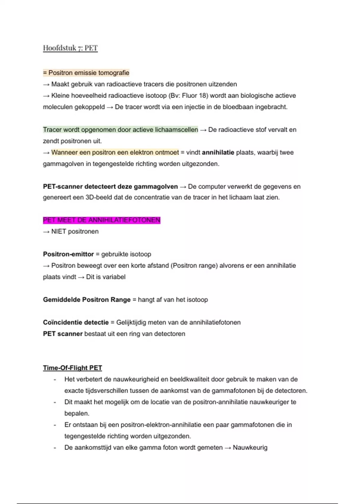 → Maakt gebruik van radioactieve tracers die positronen uitzenden