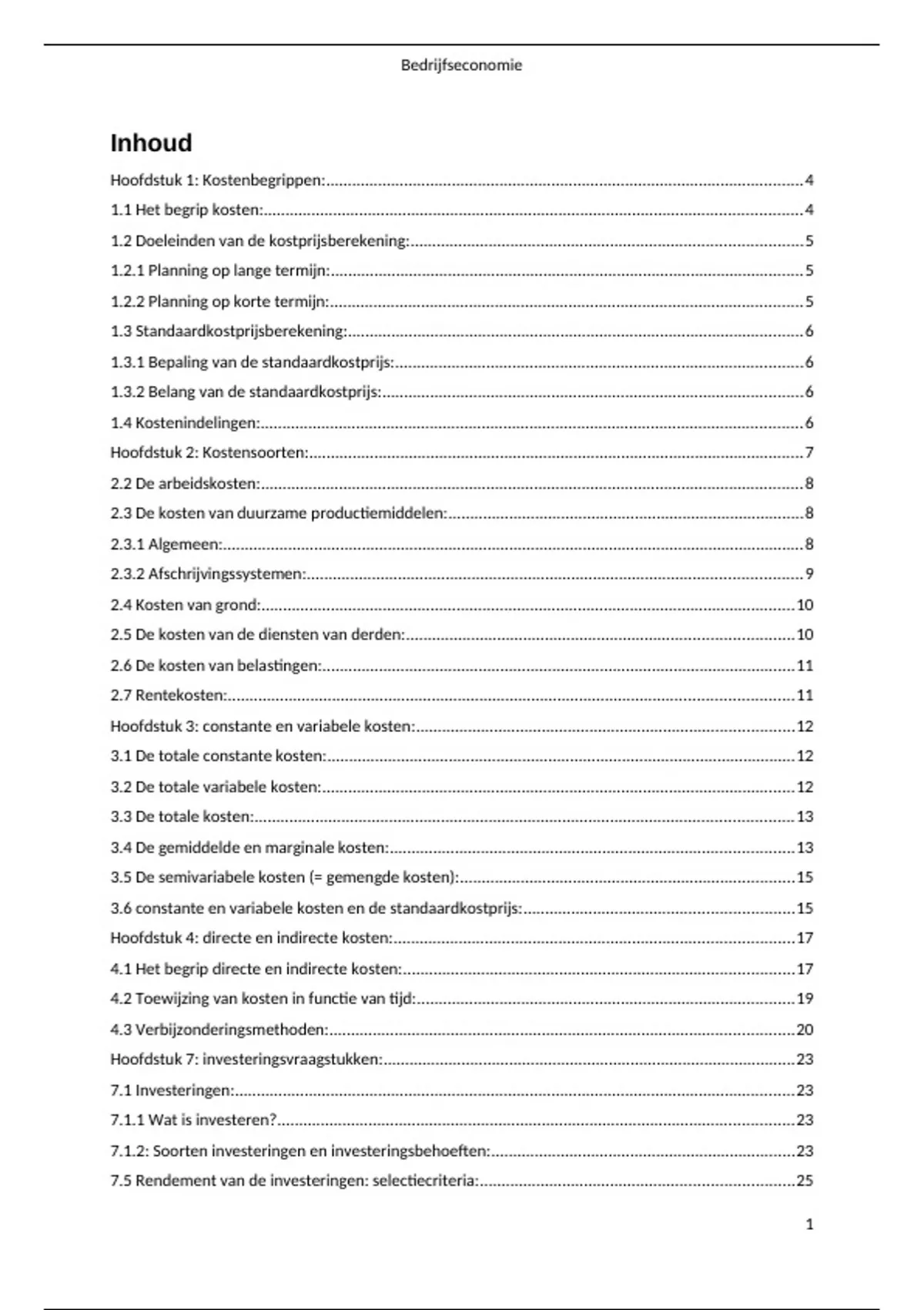 3.6 constante en variabele kosten en de standaardkostprijs:..............................................................15