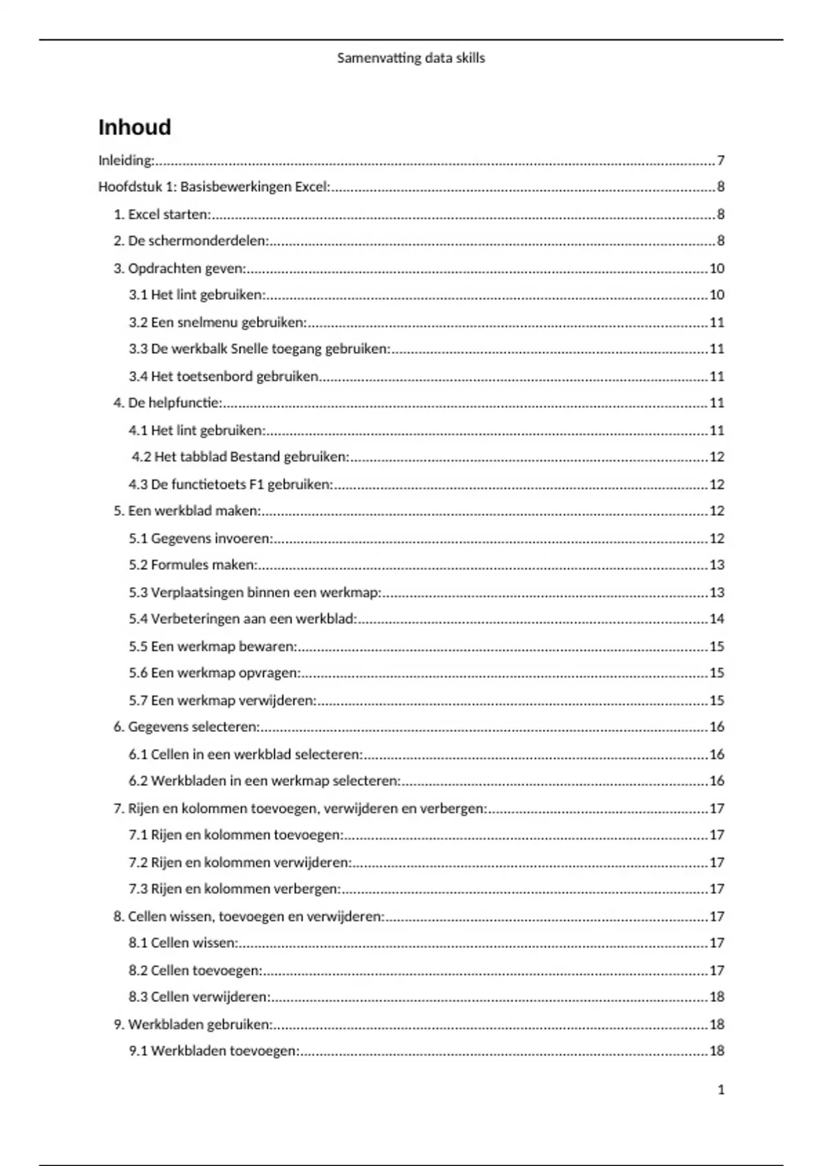 7.2 Rijen en kolommen verwijderen:............................................................................................17