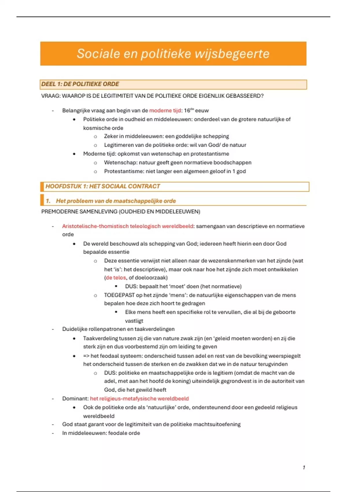 Volledige samenvatting sociale en politieke wijsbegeerte (18/20!!), gegeven door Stefan Rummens