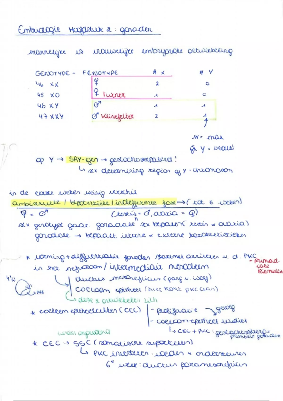 Dit document bevat aantekeningen van de les embryologie. Deze bevat dus zowel tekeningen als samenvatingen