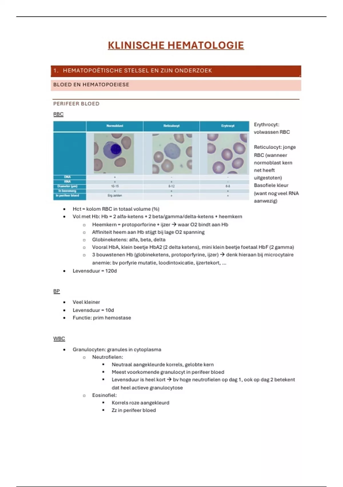 Samenvatting deel KLINISCHE HEMATOLOGIE - Hemato-oncologie 2025 (Master 1 semester 2 GNK KUL)
