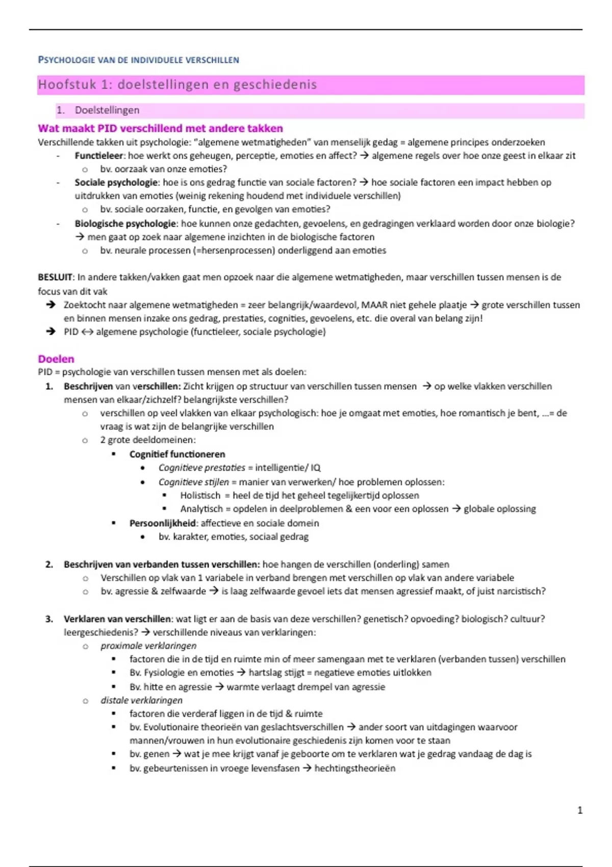 Samenvatting - Psychologie van individuele verschillen, deel 1 (P0M07a)