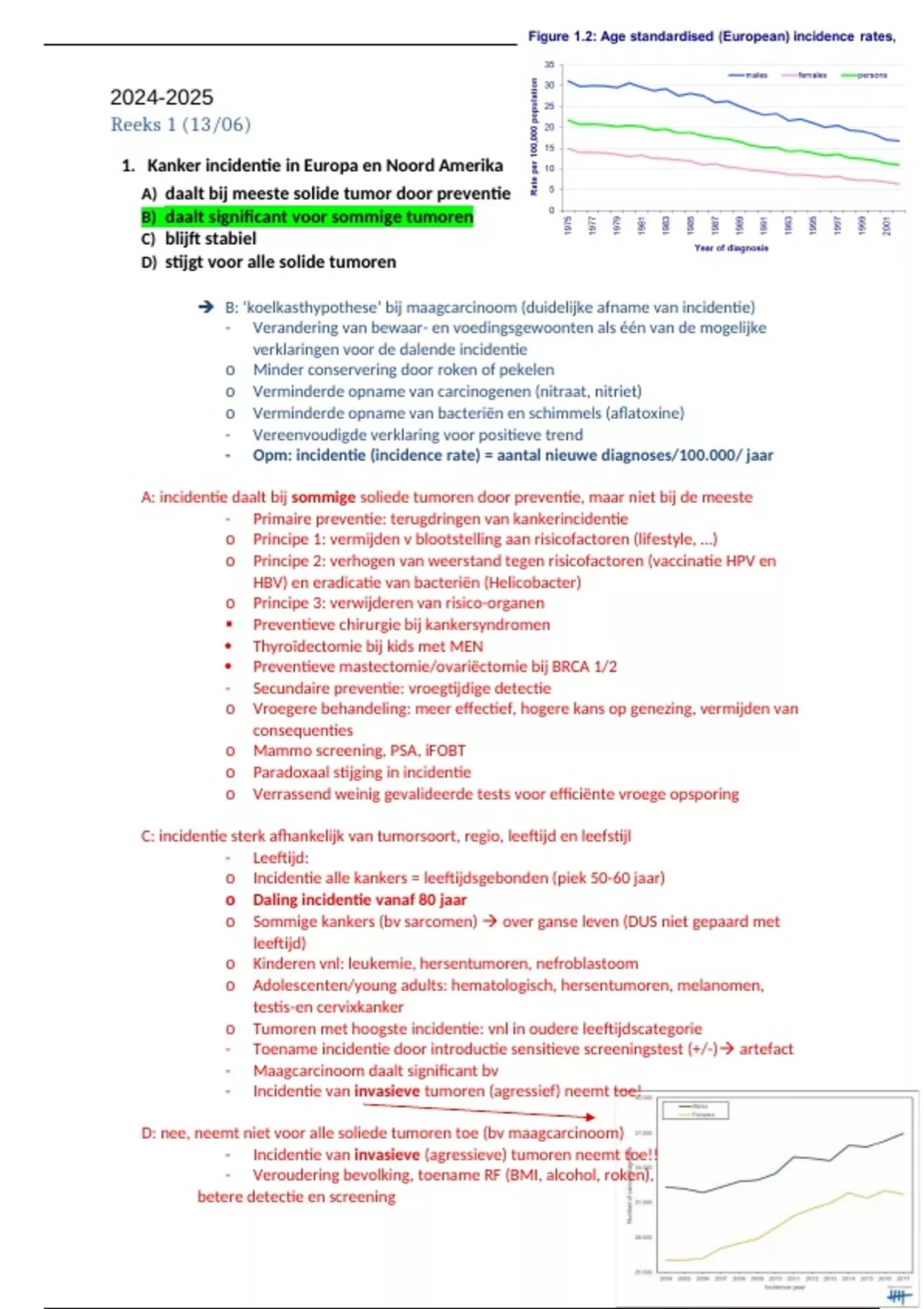 A: incidentie daalt bij sommige soliede tumoren door preventie, maar niet bij de meeste