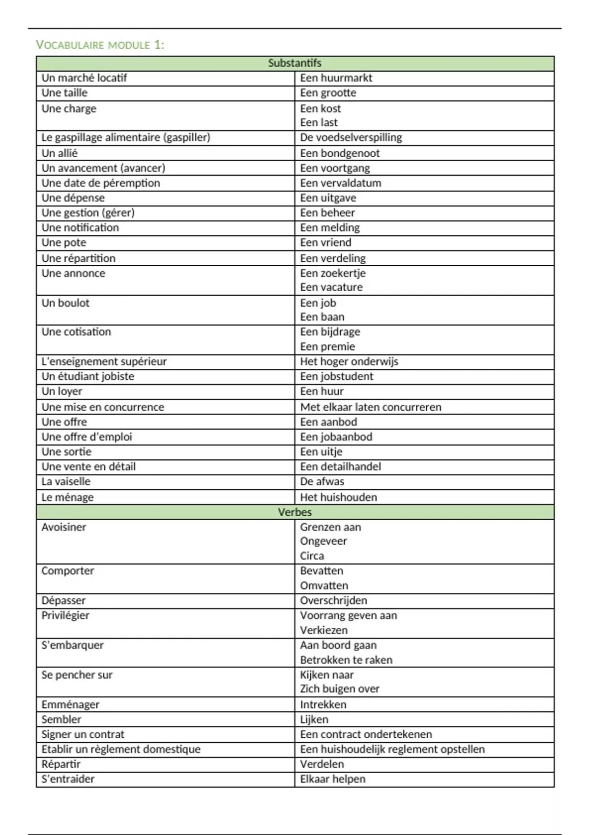 VOCABULAIRE MODULE 1: