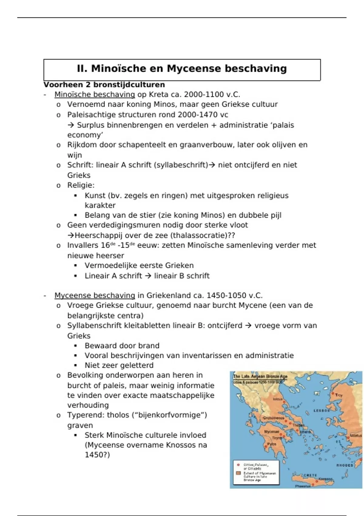 II. Minoïsche en Myceense beschaving