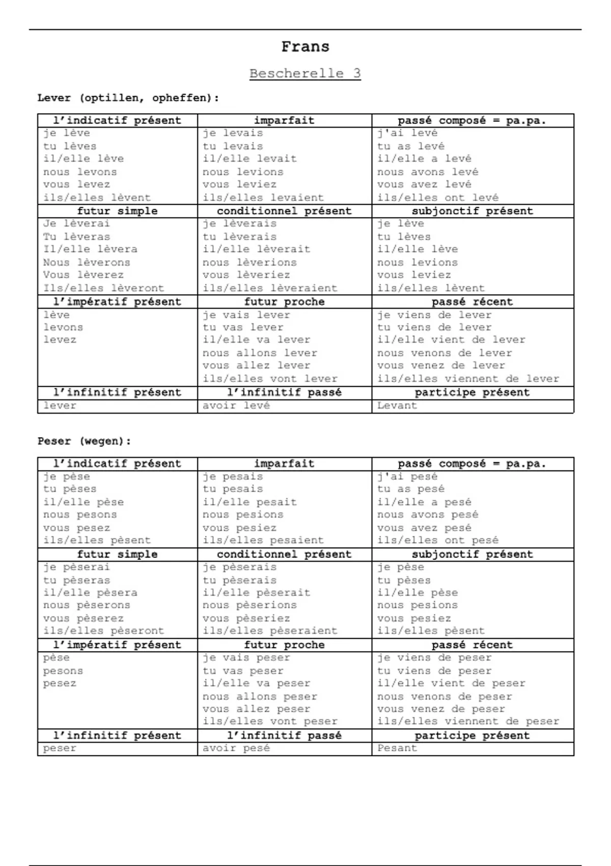 Alle Franse werkwoord vervoegingen van: lever, peser, peler, appeler, acheter, jeter Toutes les conjugaisons françaises des verbes : lever, peser, peler, appeler, acheter, jeter All French verb conjugations of: lever, peser, peler, appeler, acheter, jeter