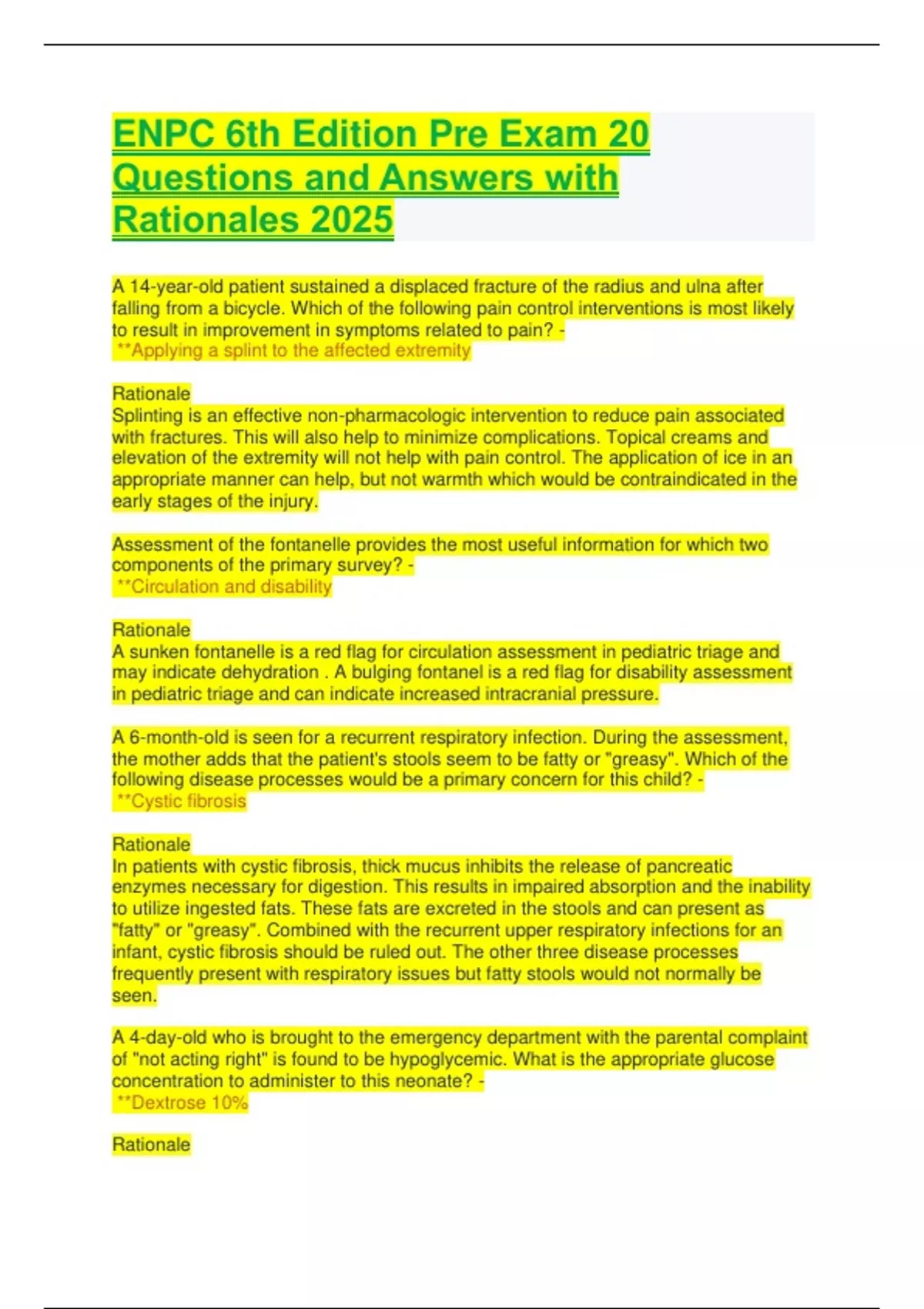 ENPC 6th Edition Pre Exam 20 Questions and Answers with Rationales