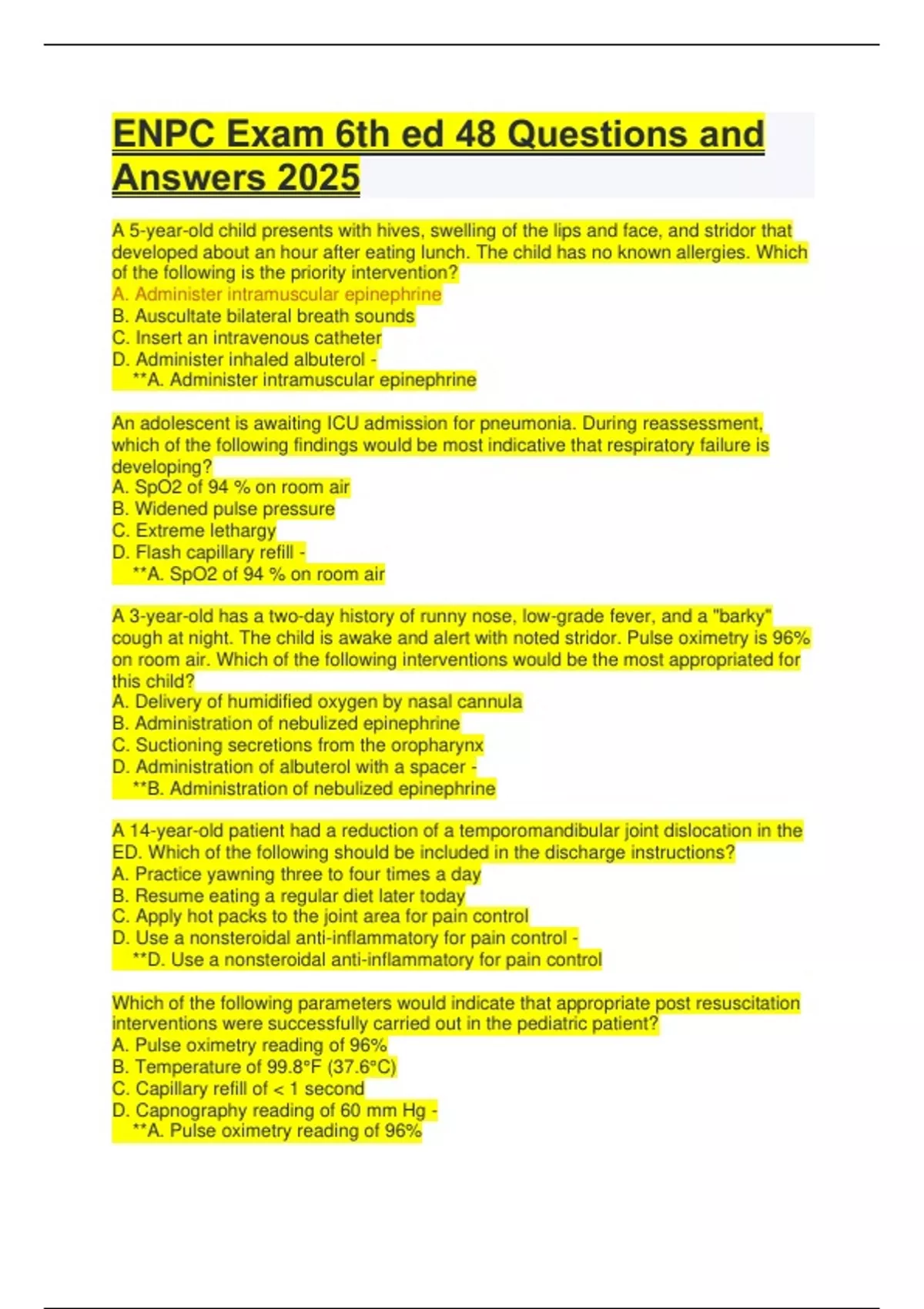 **A. Anaphylaxis