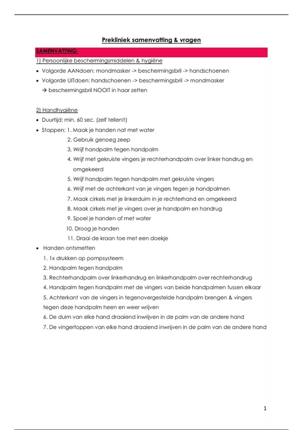 1) Persoonlijke beschermingsmiddelen & hygiëne
