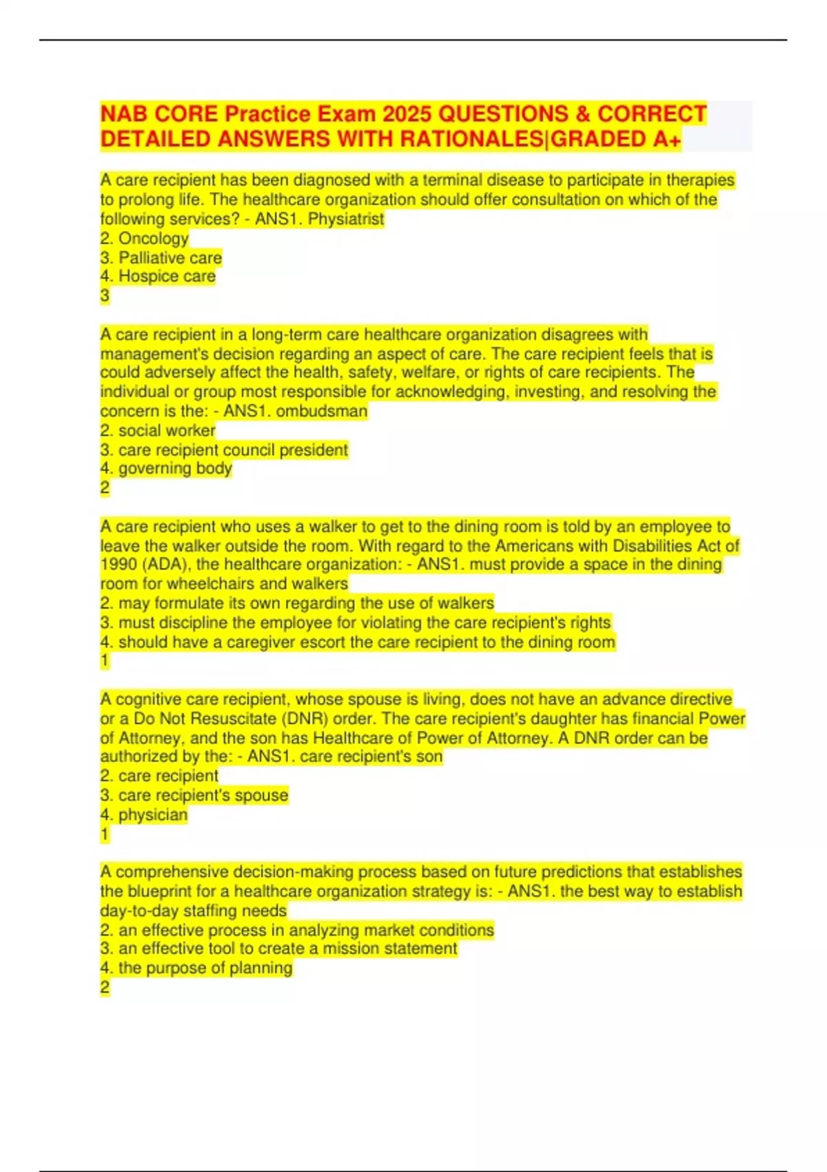 NAB CORE Practice Exam 2025 QUESTIONS & CORRECT