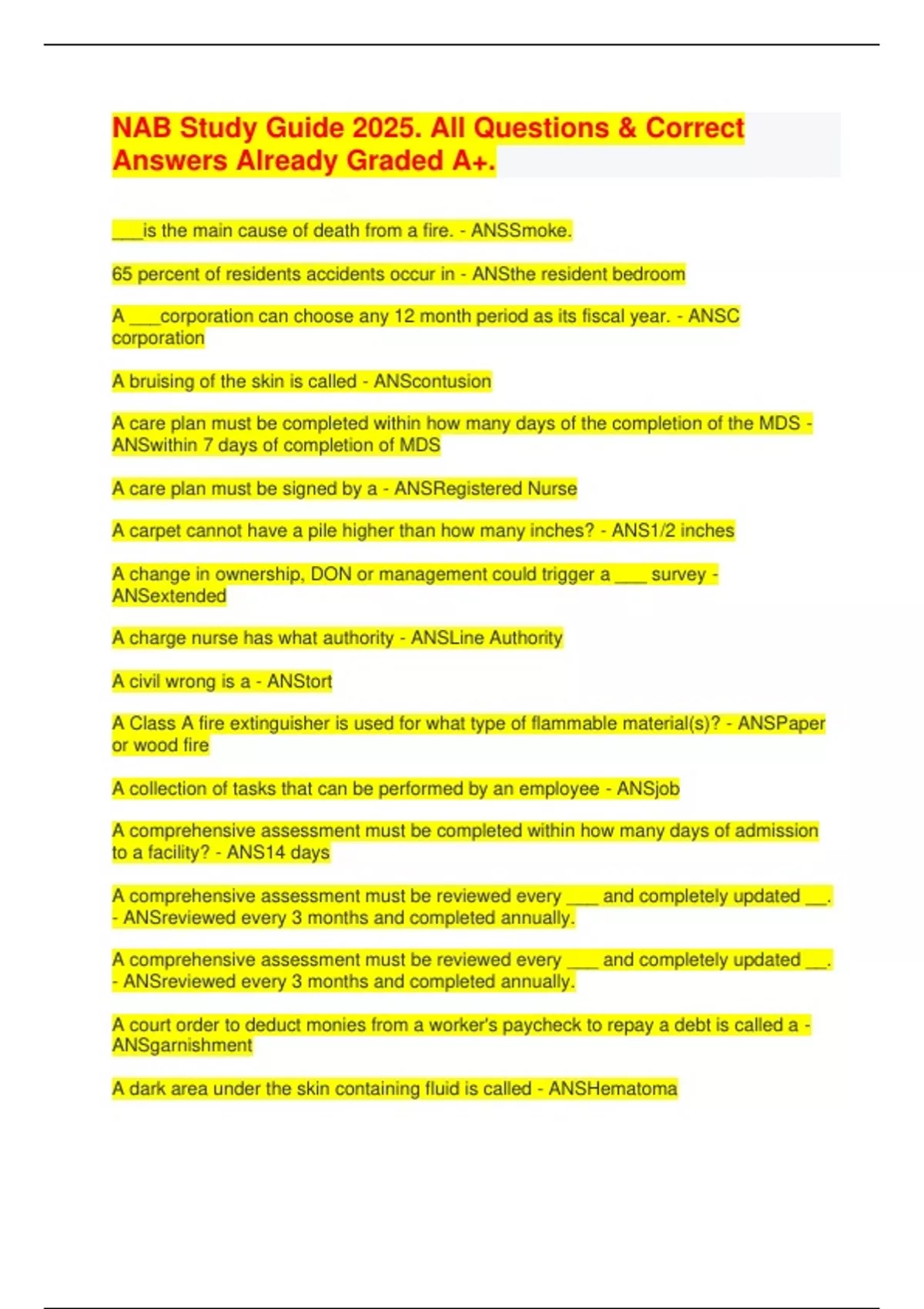 , A resident must be given a physical exam at least how often? - ANSEvery 3 months