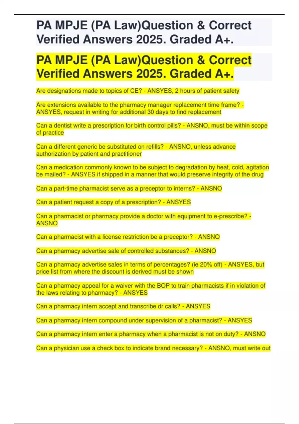 PA MPJE (PA Law) Question & Correct Verified Answers 2025. Graded A+..pdf