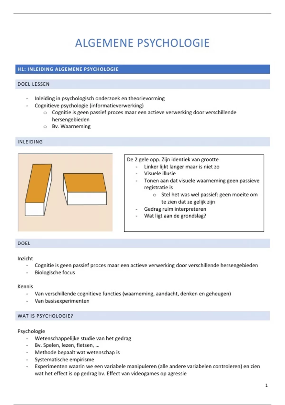 H1: INLEIDING ALGEMENE PSYCHOLOGIE