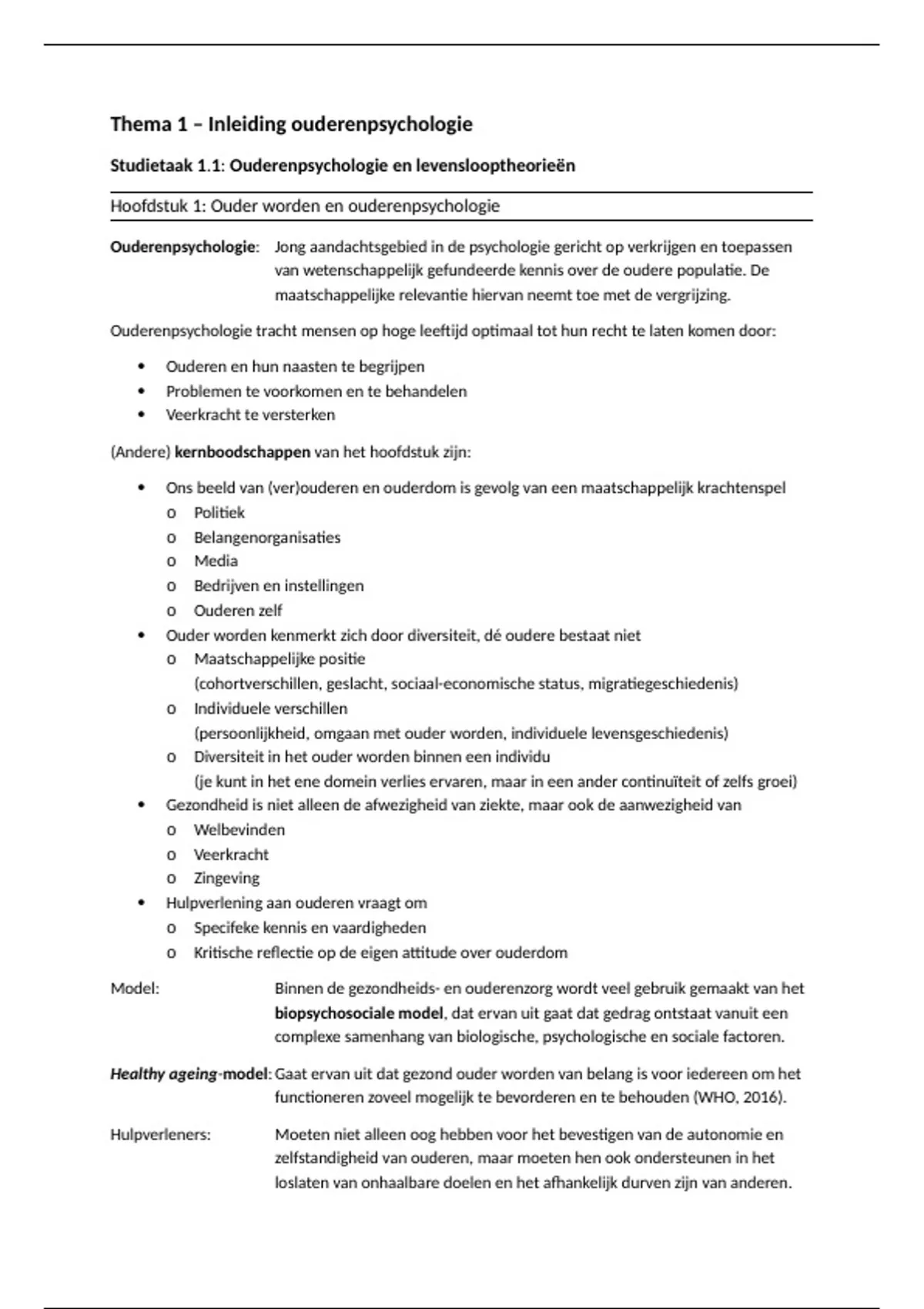 Hoofdstuk 1: Ouder worden en ouderenpsychologie