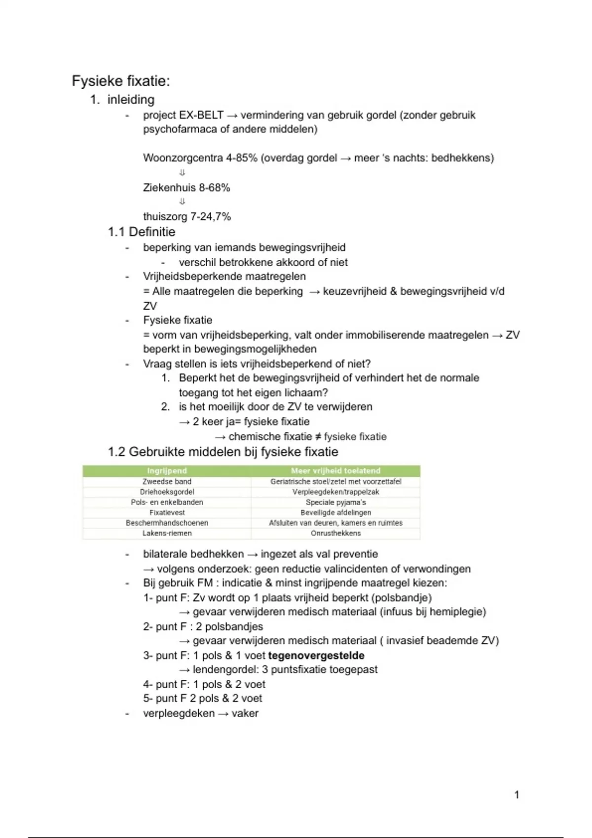 1- punt F: Zv wordt op 1 plaats vrijheid beperkt (polsbandje)