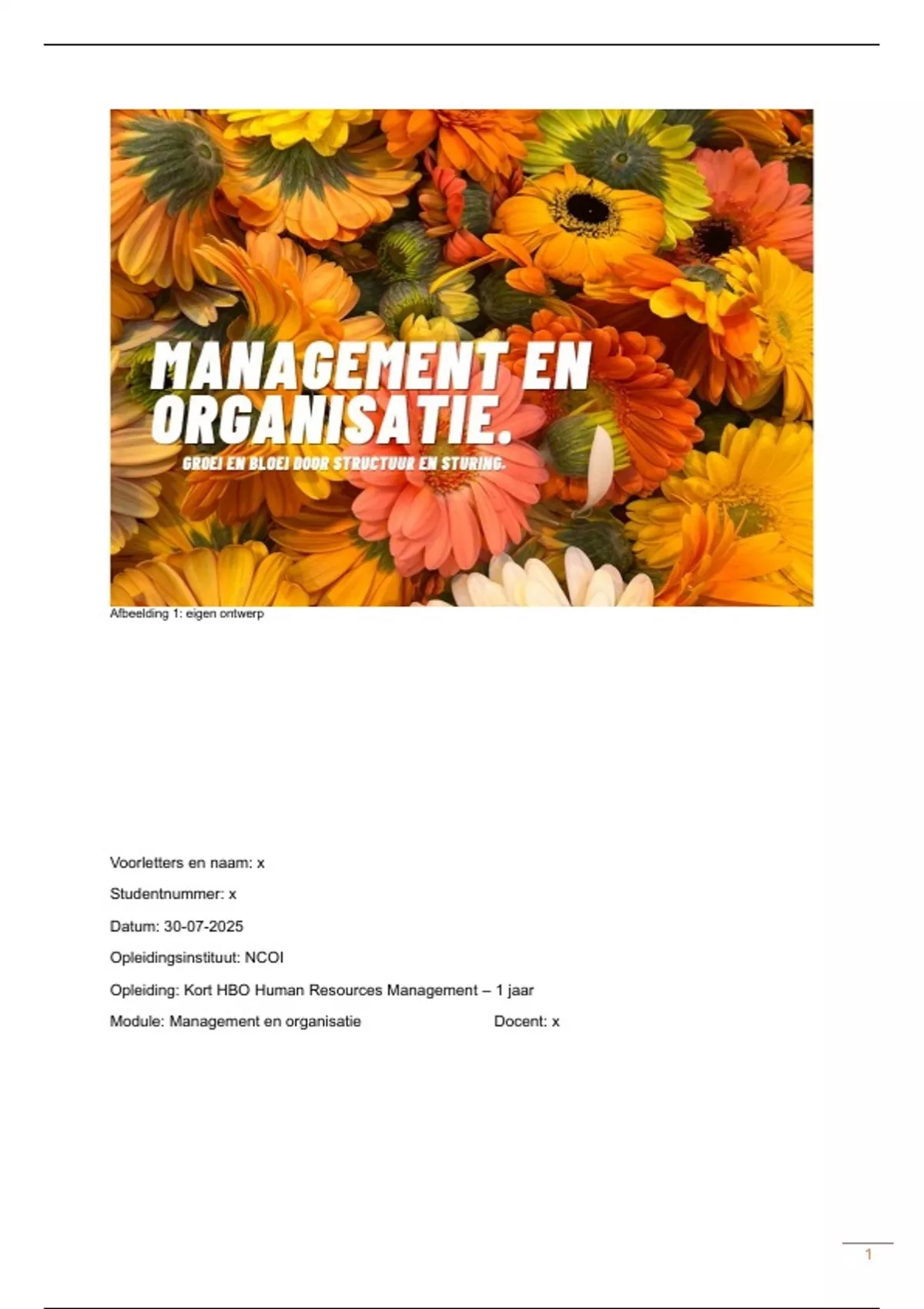 Voor de module Management en organisatie, zal ik de strategie en besturing van xx aan de hand van