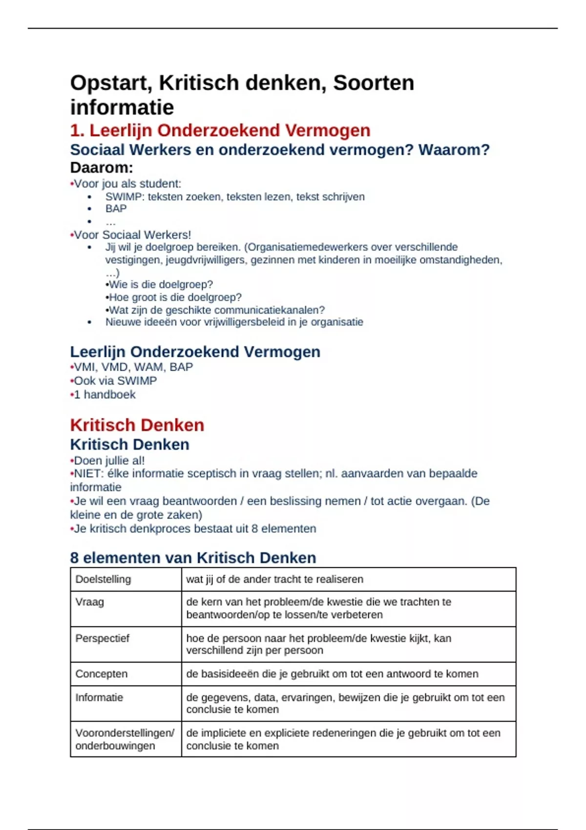 •Focus op 1 van de 8 elementen van Kritisch Denken: Informatie