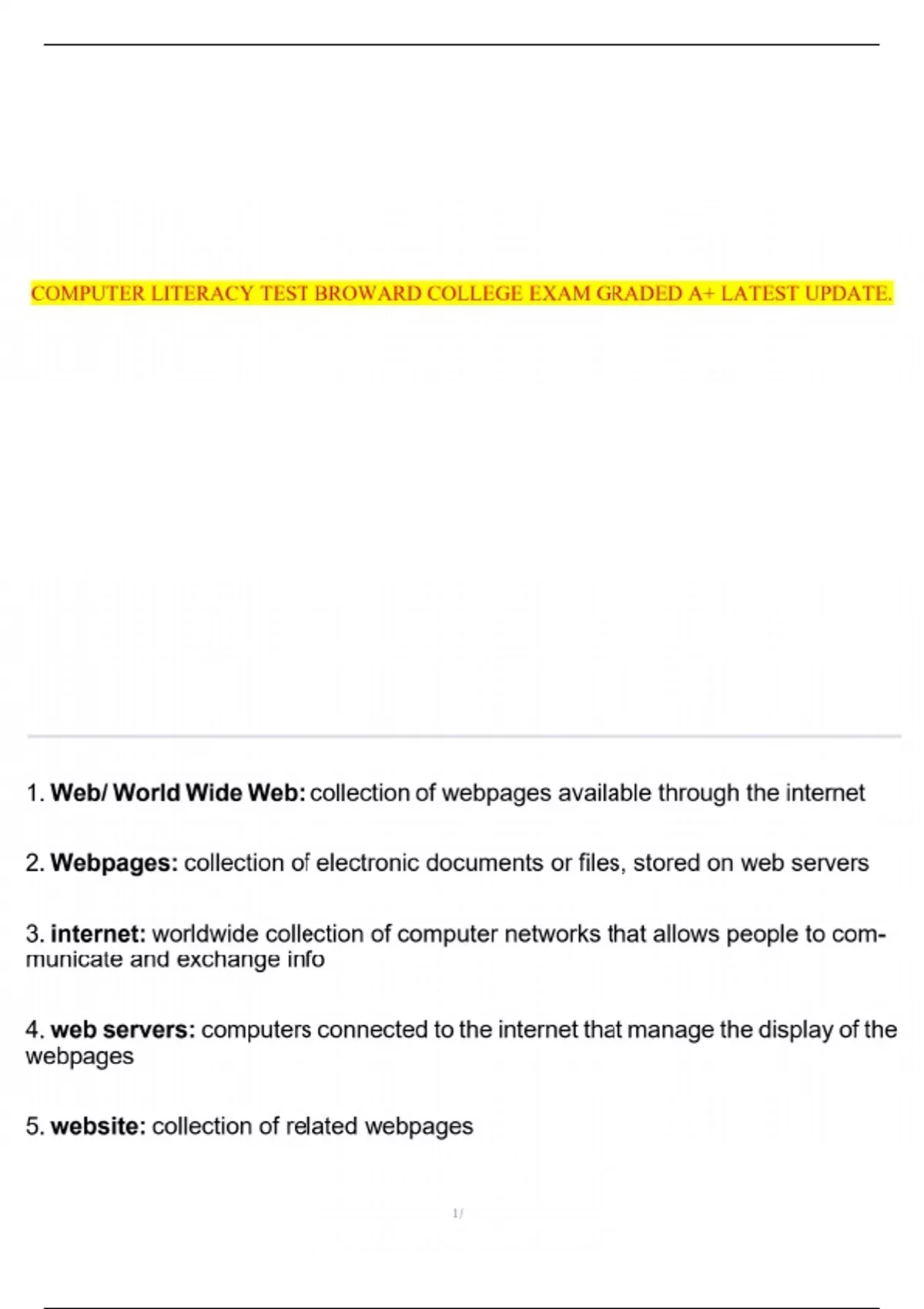 COMPUTER LITERACY TEST BROWARD COLLEGE EXAM GRADED A+ LATEST UPDATE.